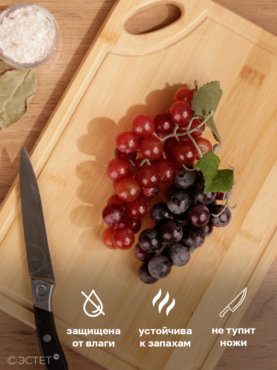 Доска разделочная бамбук 34 х 24 х 1.8 см интересное: