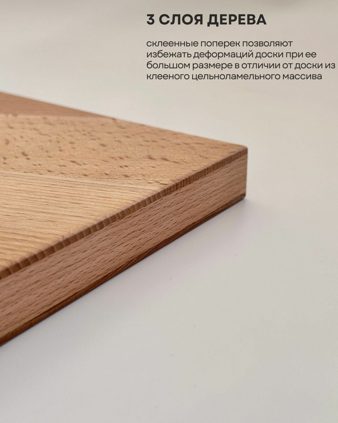 Доска для раскатки теста трехслойная с упором, граб, 38*50*5 (см)