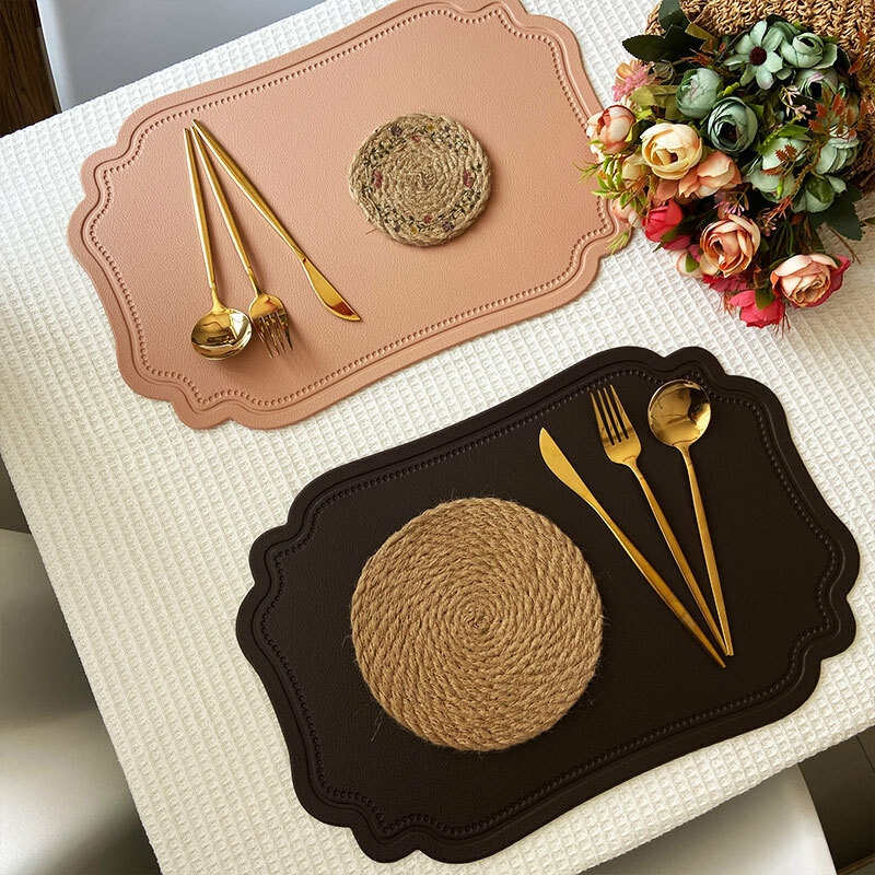 Купить Плейсматы из экокожи, цвет коричневый, прямоугольные, салфетки сервировочные на стол, 2 штуки