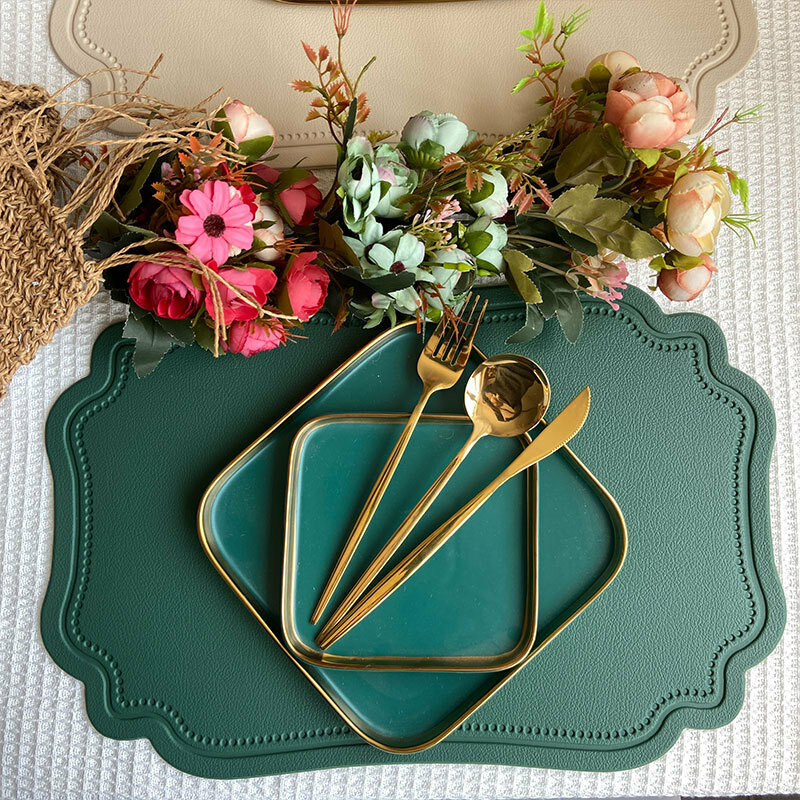 Купить Плейсматы из экокожи, цвет зеленый / изумрудный, прямоугольные, салфетки сервировочные на стол, 2 штуки