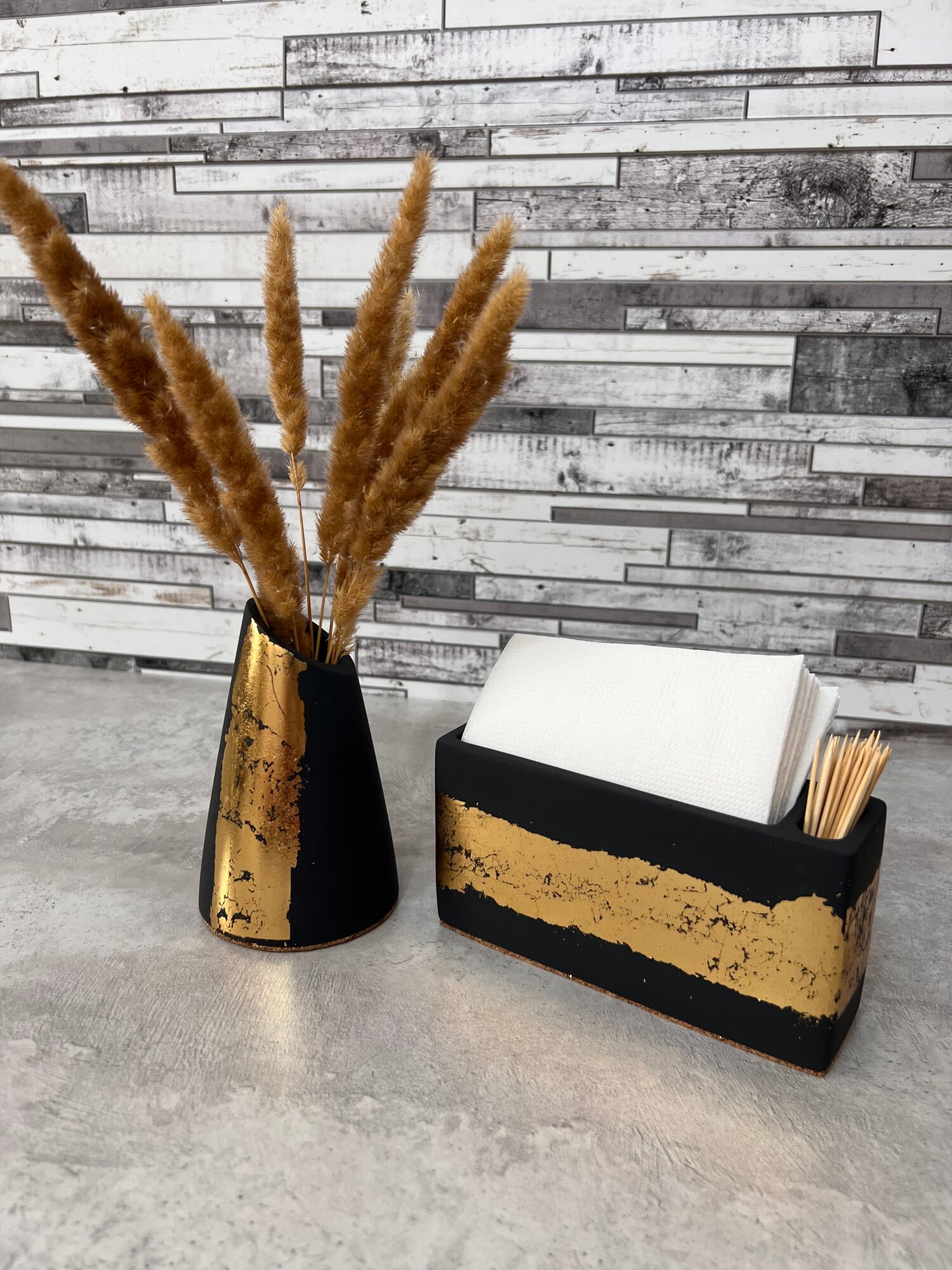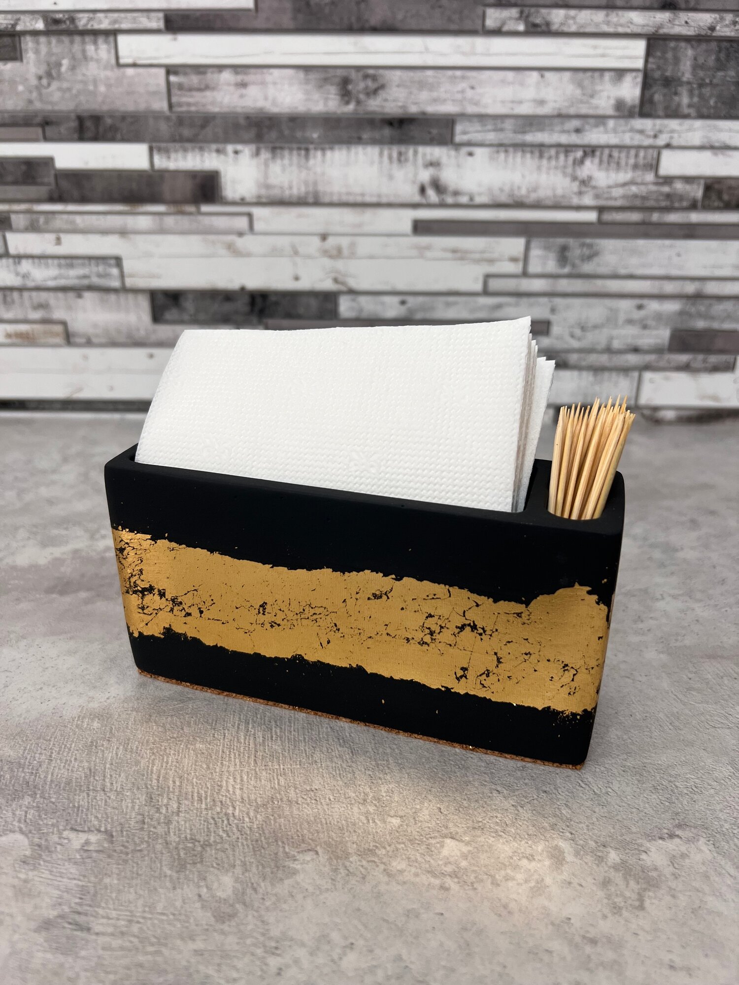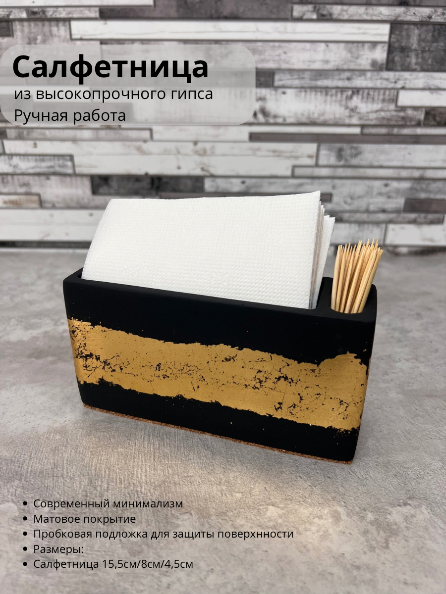 Салфетница интерьерная, органайзер для салфеток и зубочисток, черный лофт, графитовый матовый золотой интересное: