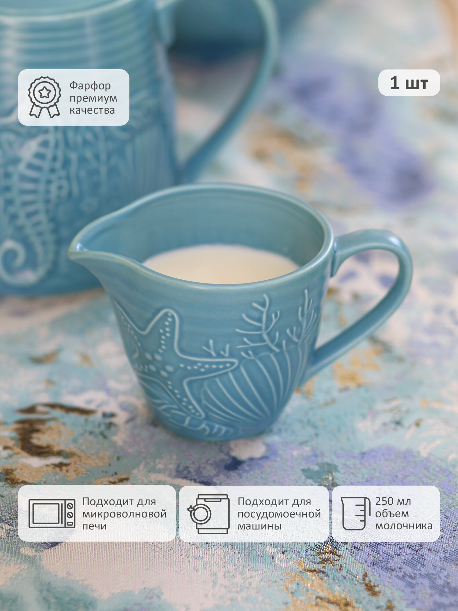 Молочник Морской небесно-голубой из летней коллекции Marine World Collection интересное: