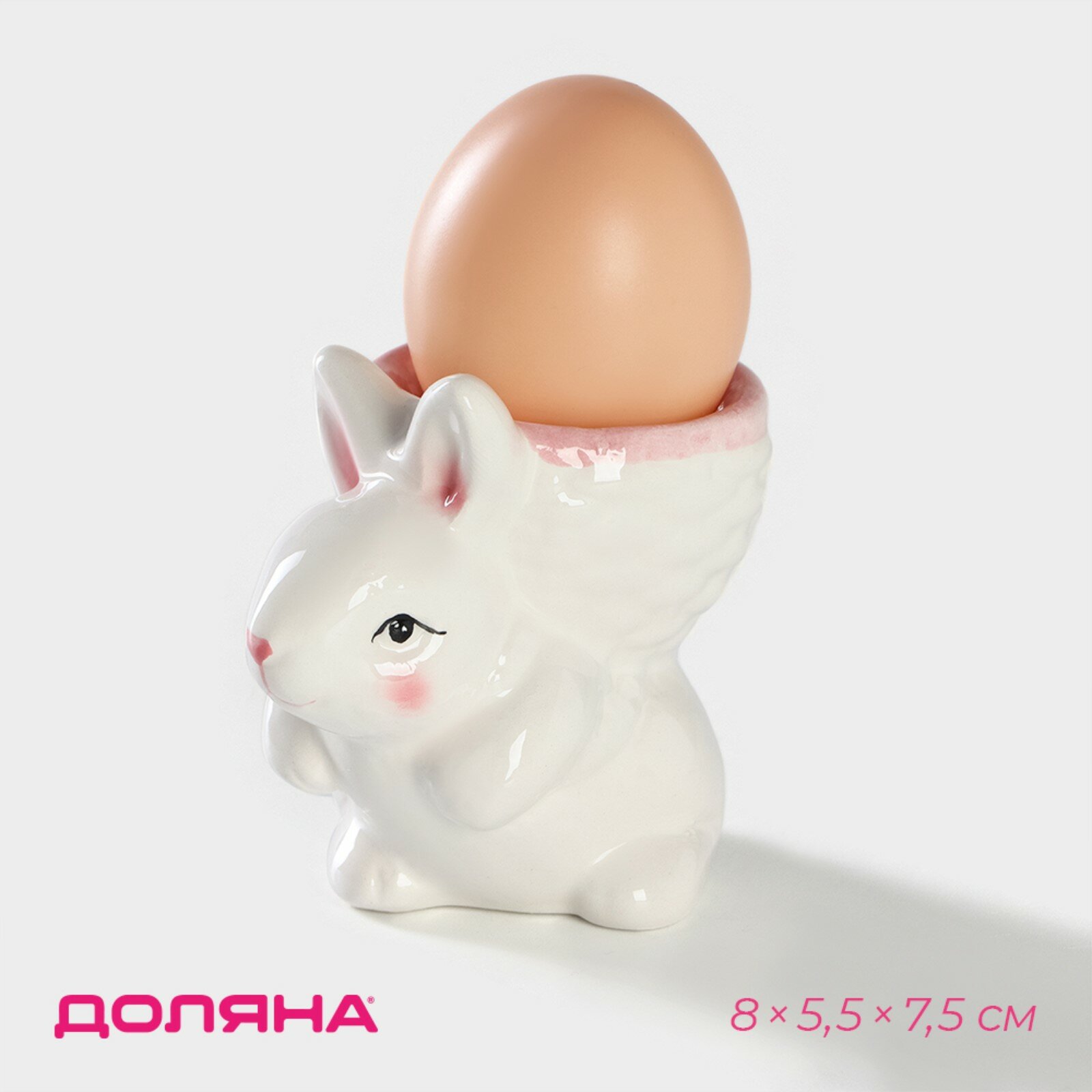 Купить Подставка для яйца Доляна «Зайка», 8×5,5×7,5 см, цвет розовый