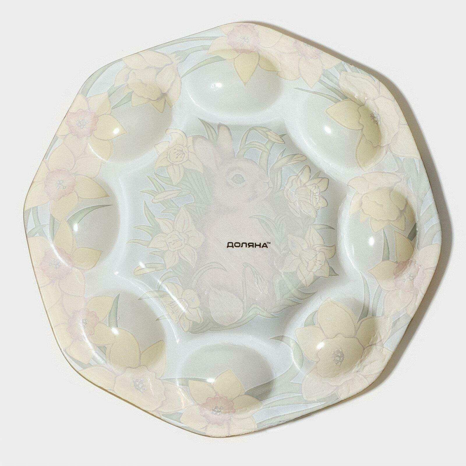 Купить Подставка для яиц Доляна "Кролик в цветах", d=22 см, 8 ячеек, стекло