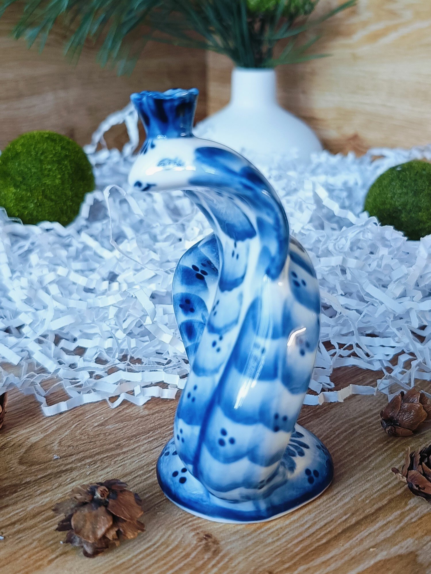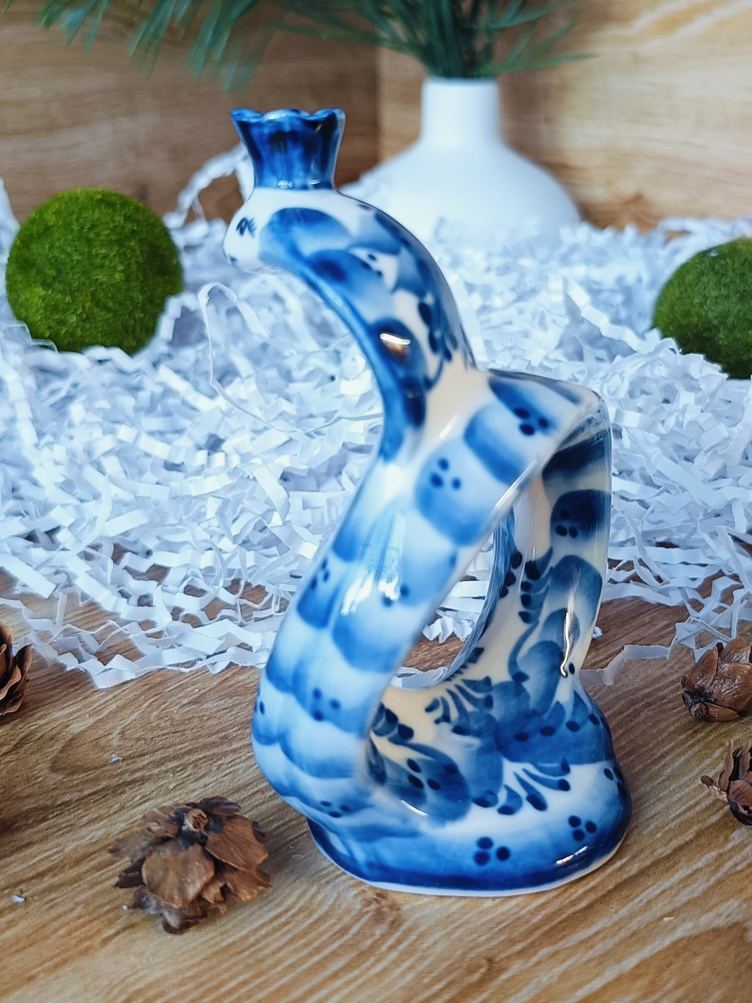 Салфетница Гжель "Змея с короной", (гжельский фарфор, ручная роспись), высота 11 см. интересное: