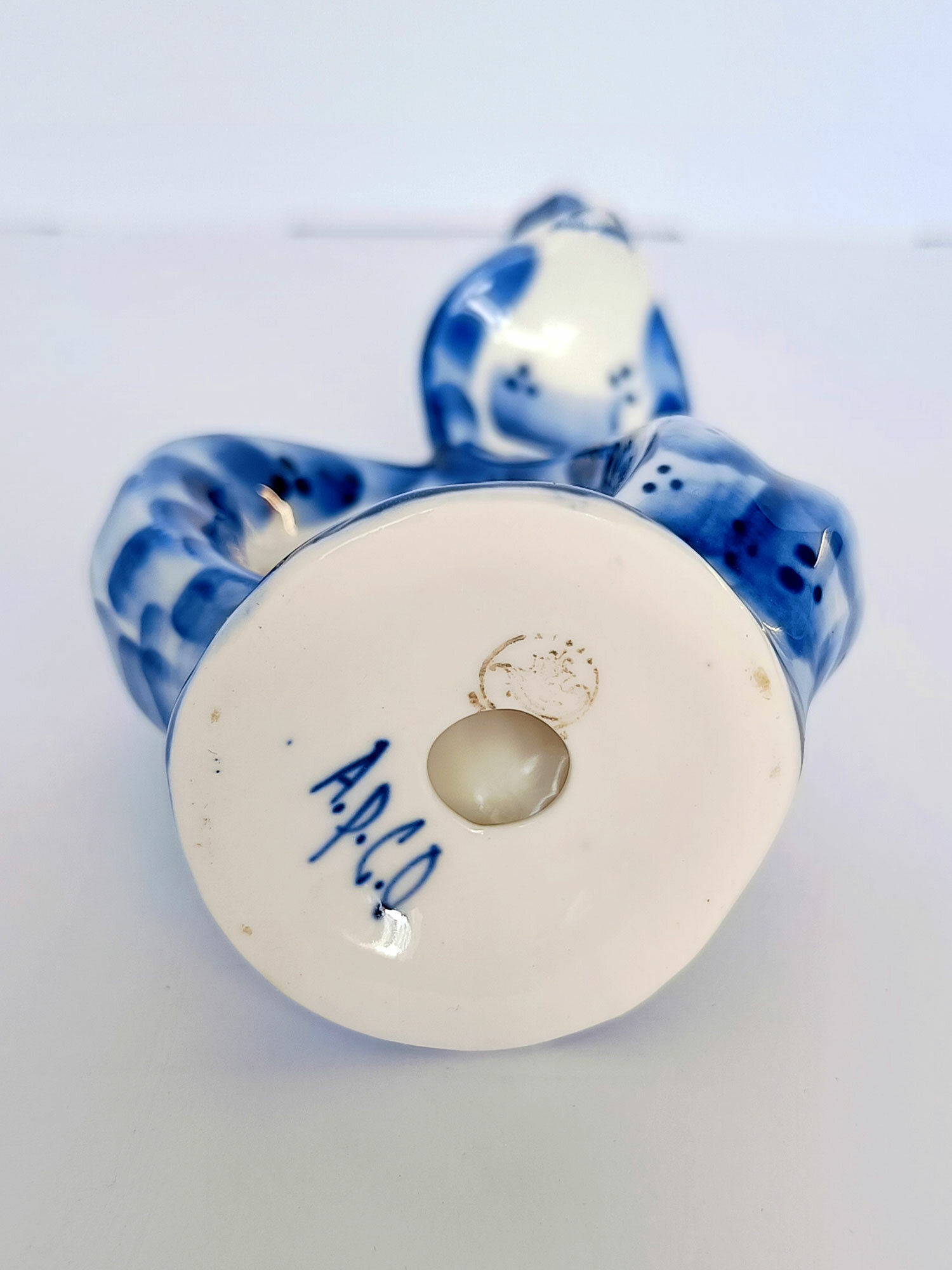 Купить Салфетница Гжель "Змея с короной", (гжельский фарфор, ручная роспись), высота 11 см.