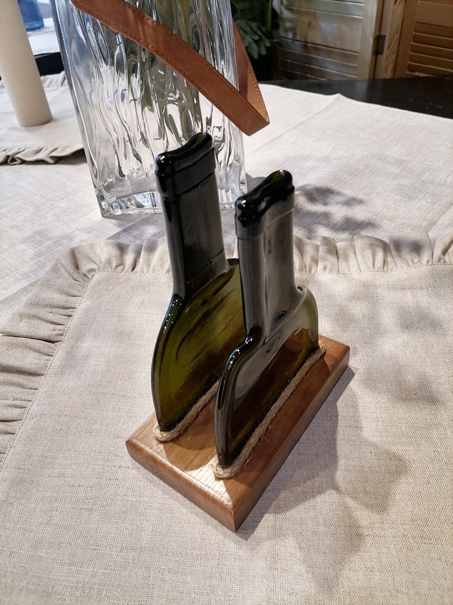 Салфетница-визитница "Бутылка" на подставке, дерево и стекло интересное: