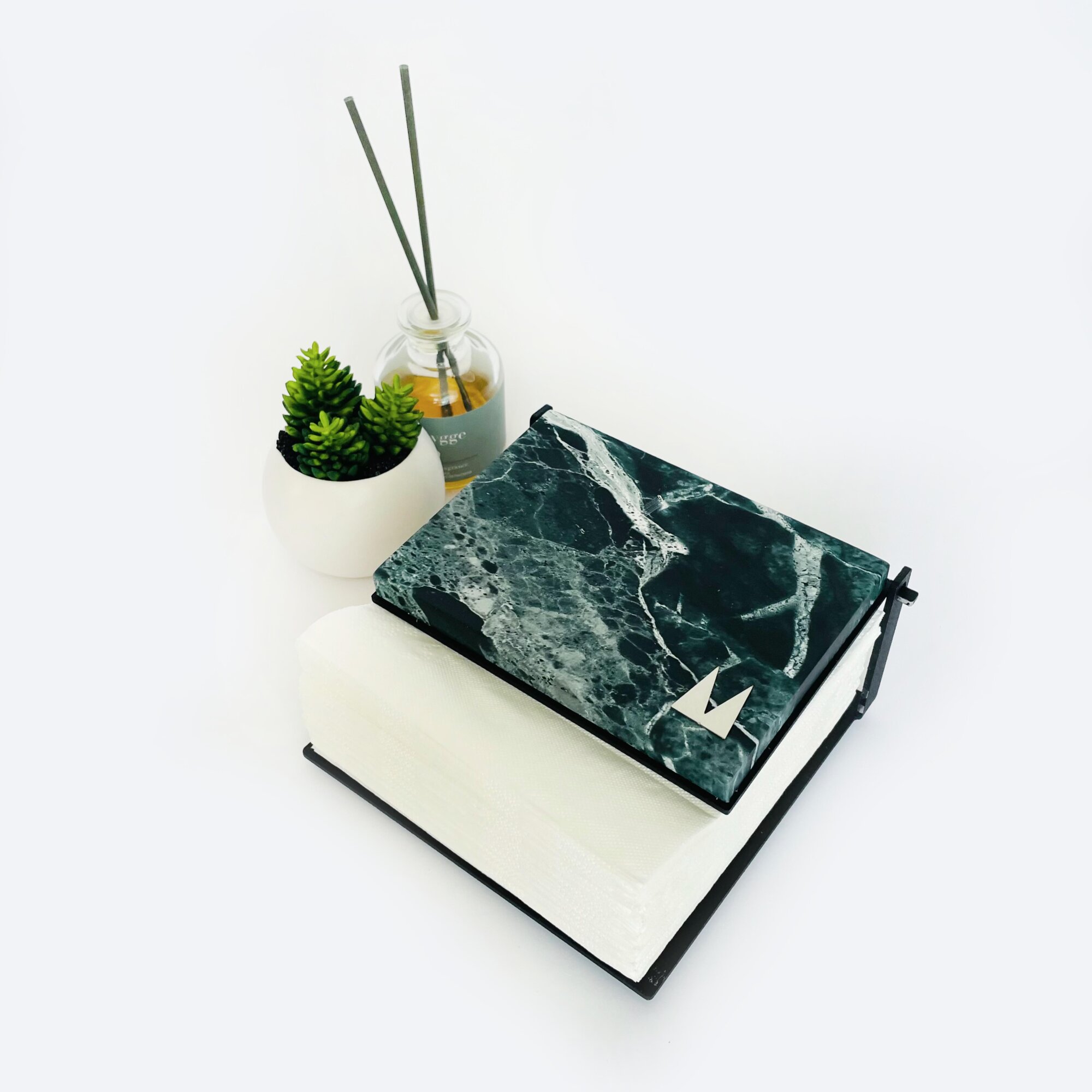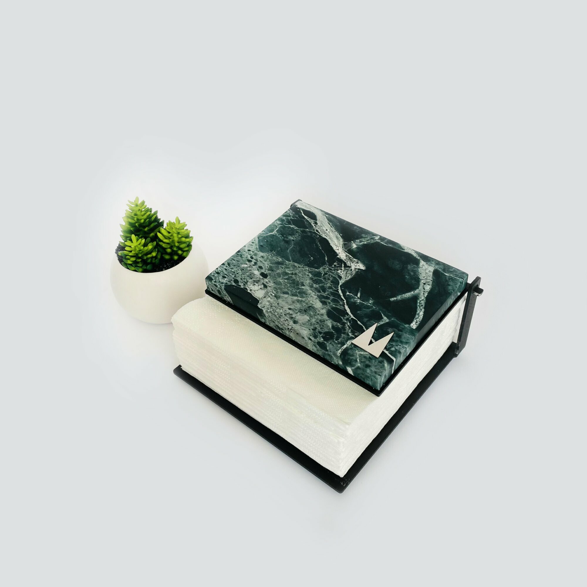 Салфетница кухонная "Mattia", натуральный камень, Зеленый мрамор на чёрном