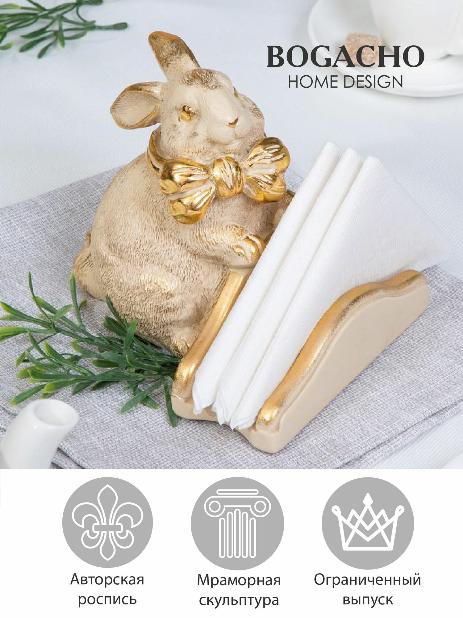 Купить Мраморная салфетница подставка Bogacho Кролик Банни с красивым декором для бумажных салфеток на кухню и в столовую