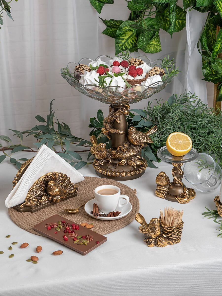 Купить Мраморная салфетница подставка Bogacho Птичка Зарничка с красивым декором для бумажных салфеток на кухню и в столовую