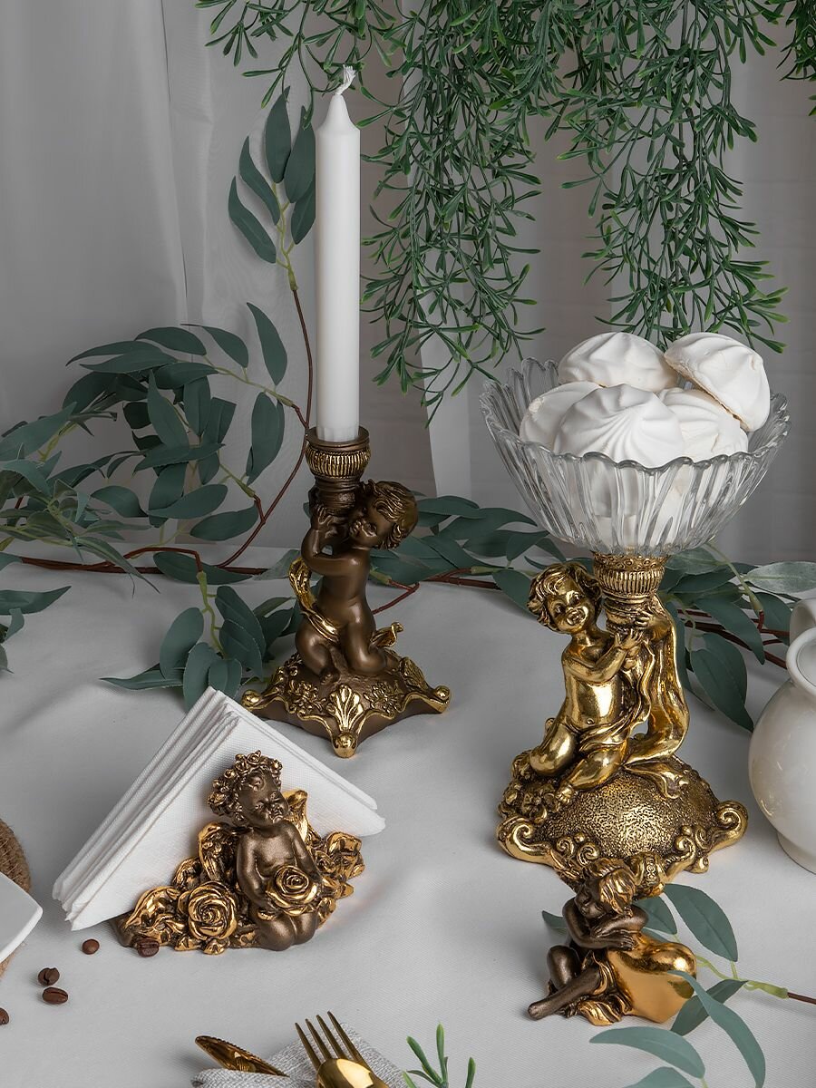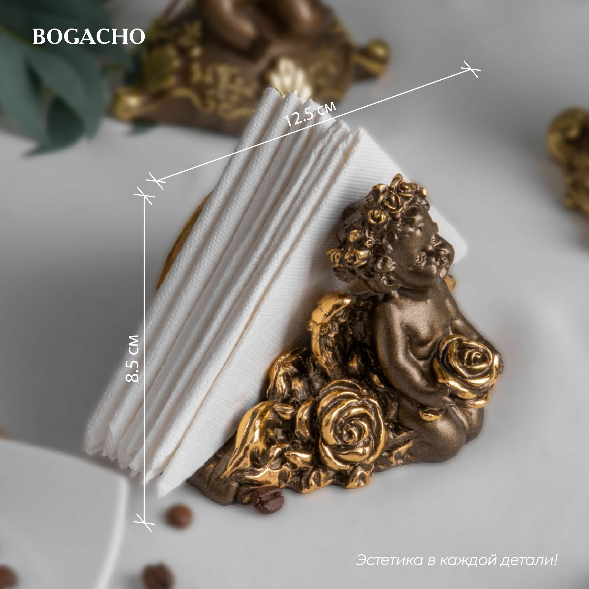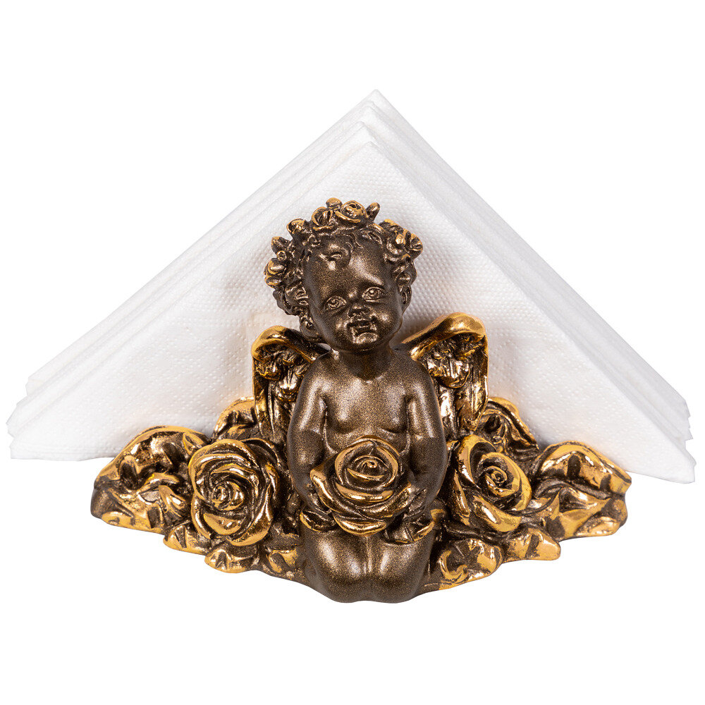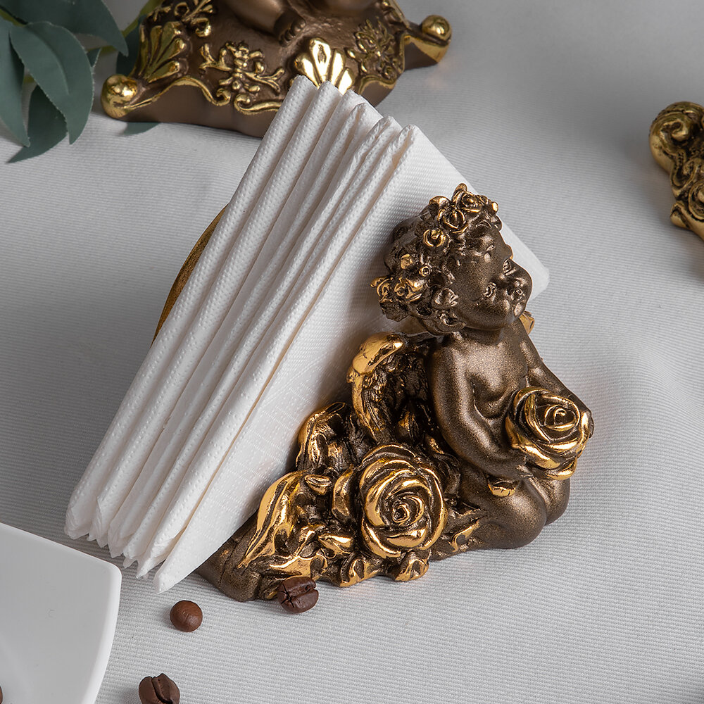 Мраморная салфетница подставка Bogacho Ангел Роуз с красивым декором для бумажных салфеток на кухню и в столовую интересное: