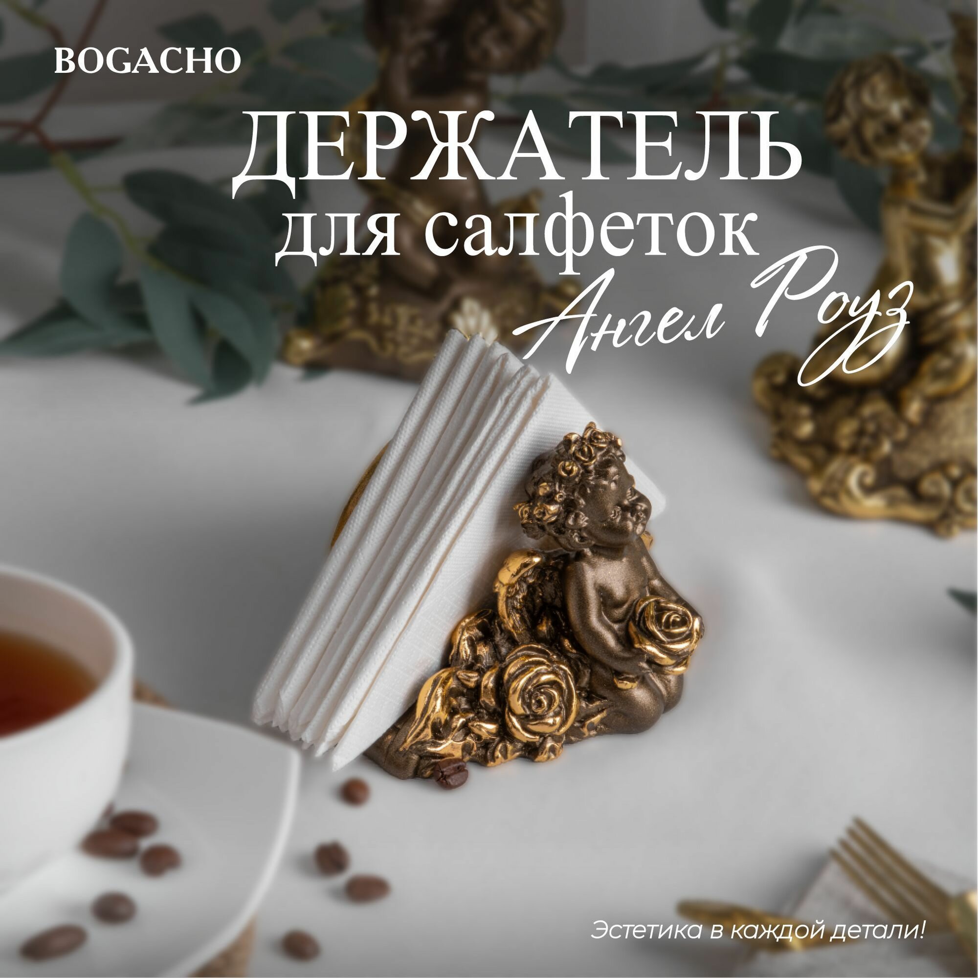 Купить Мраморная салфетница подставка Bogacho Ангел Роуз с красивым декором для бумажных салфеток на кухню и в столовую