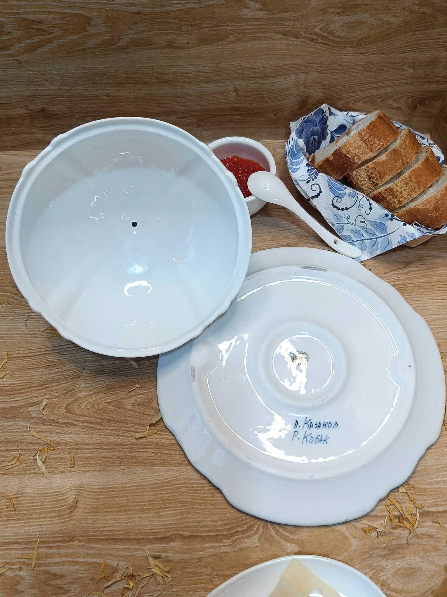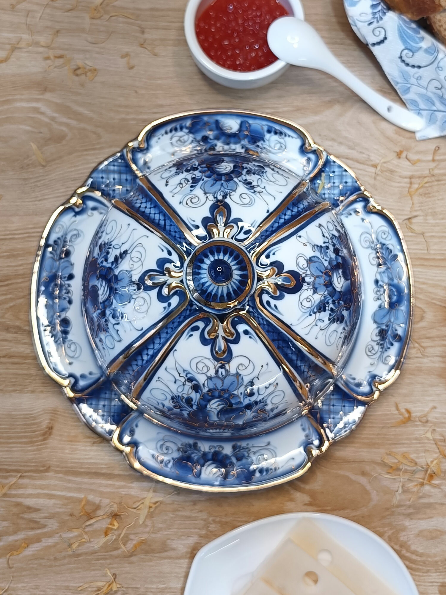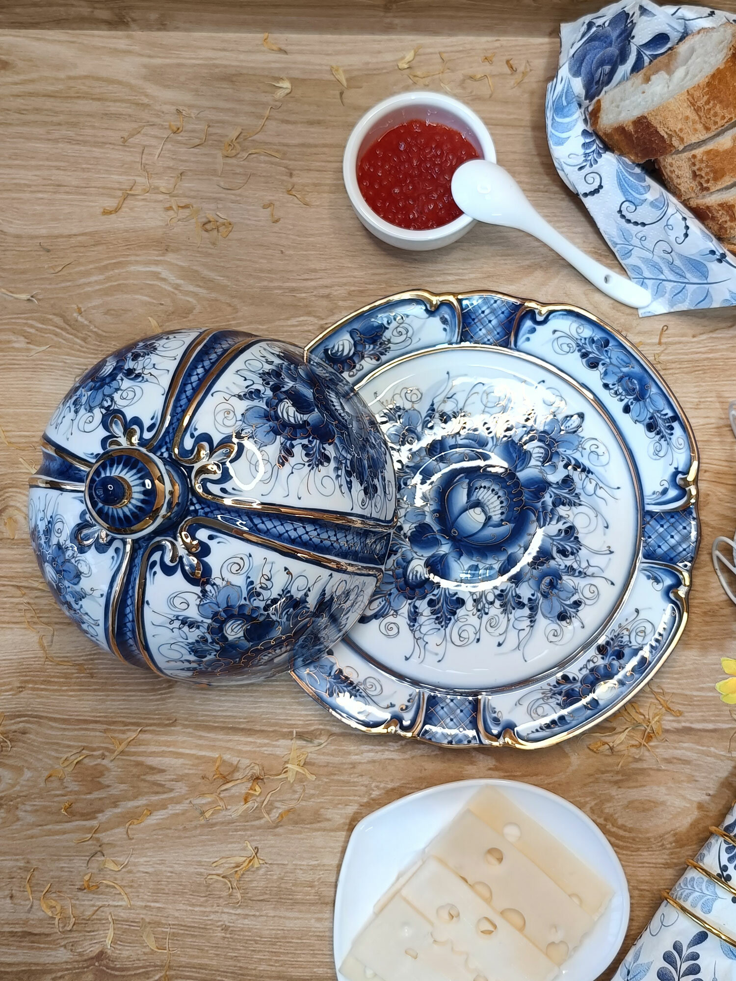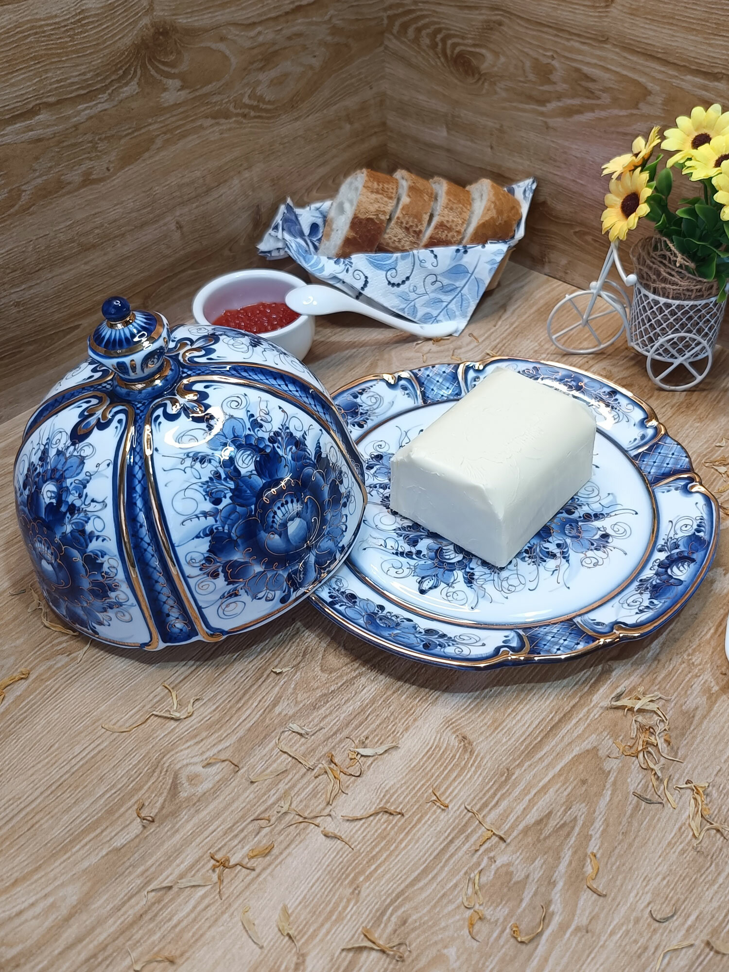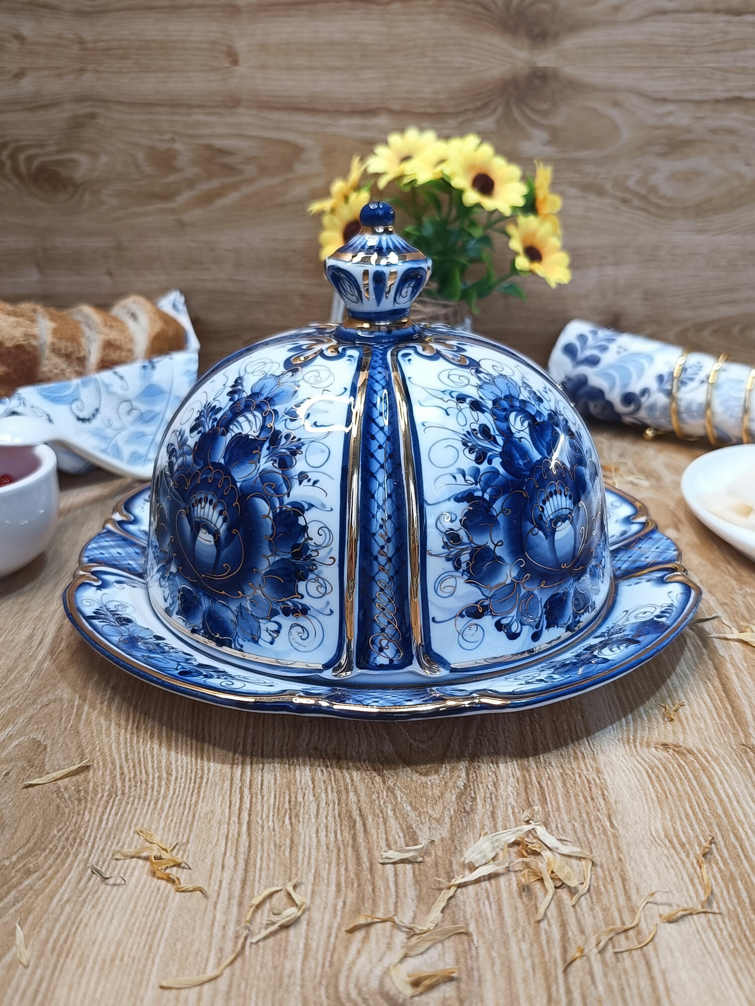 Масленка в золоте Гжель "Сказка", (гжельский фарфор, авторская роспись), диаметр 20 см. интересное: