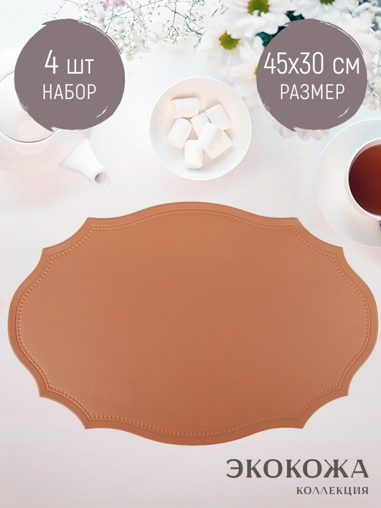 Набор салфеток сервировочных 4 шт "Экокожа", 45х30х0,25 см, полиуретан, бежевый, Nouvelle интересное: