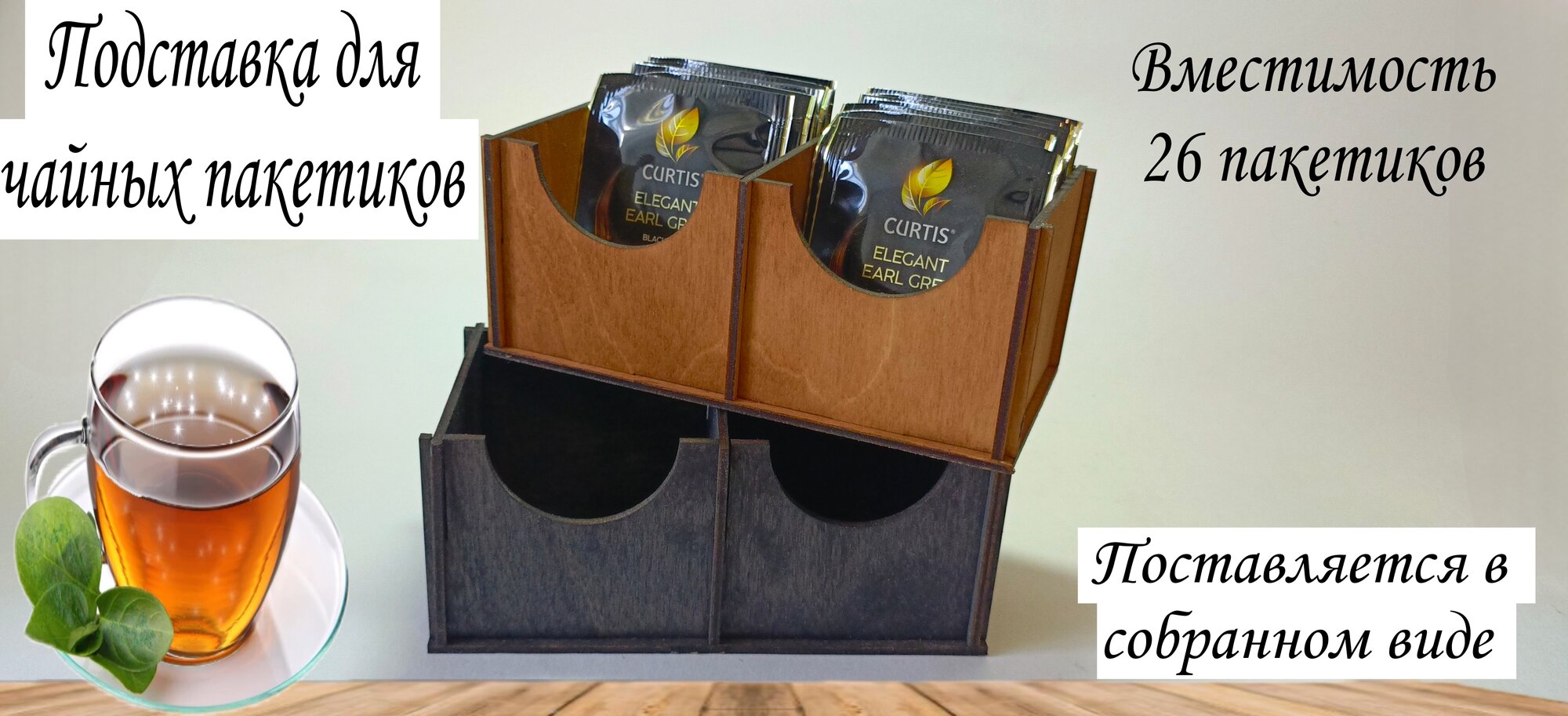 Подставка для чайных пакетиков, органайзер для чайных пакетиков, органайзер, цвет Мокко. интересное:
