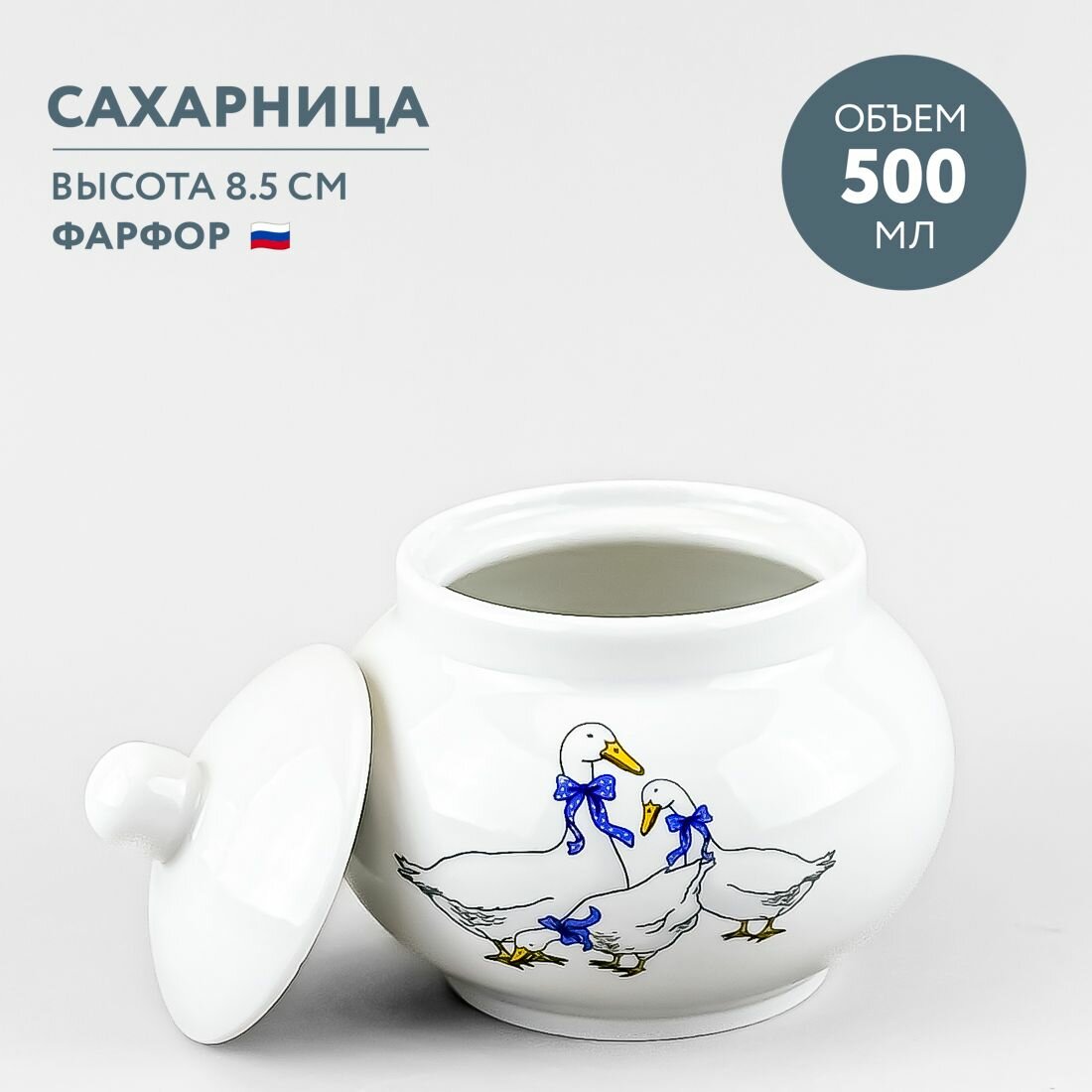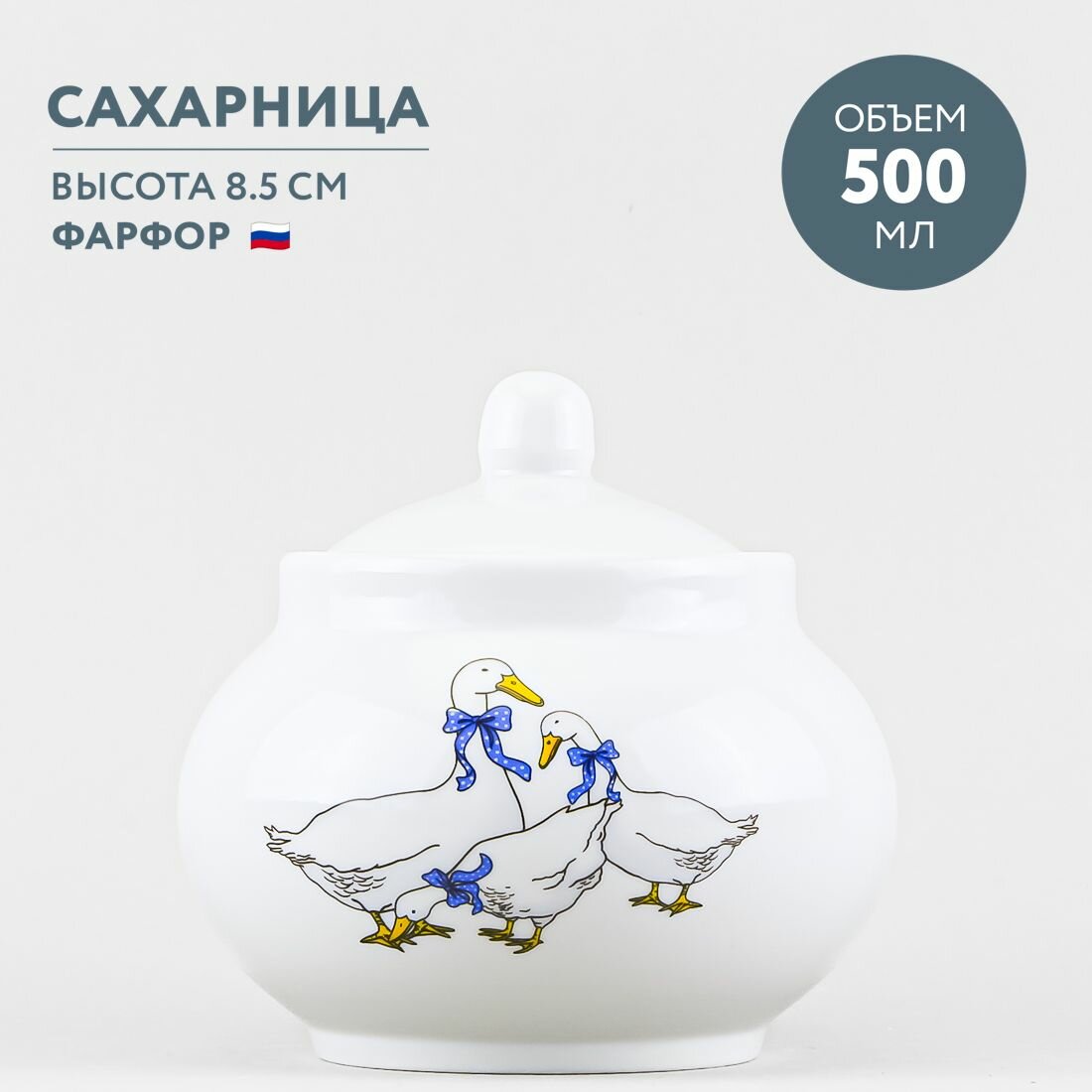 Сахарница фарфоровая с крышкой 500 мл Дулевский фарфор Гуси новые интересное: