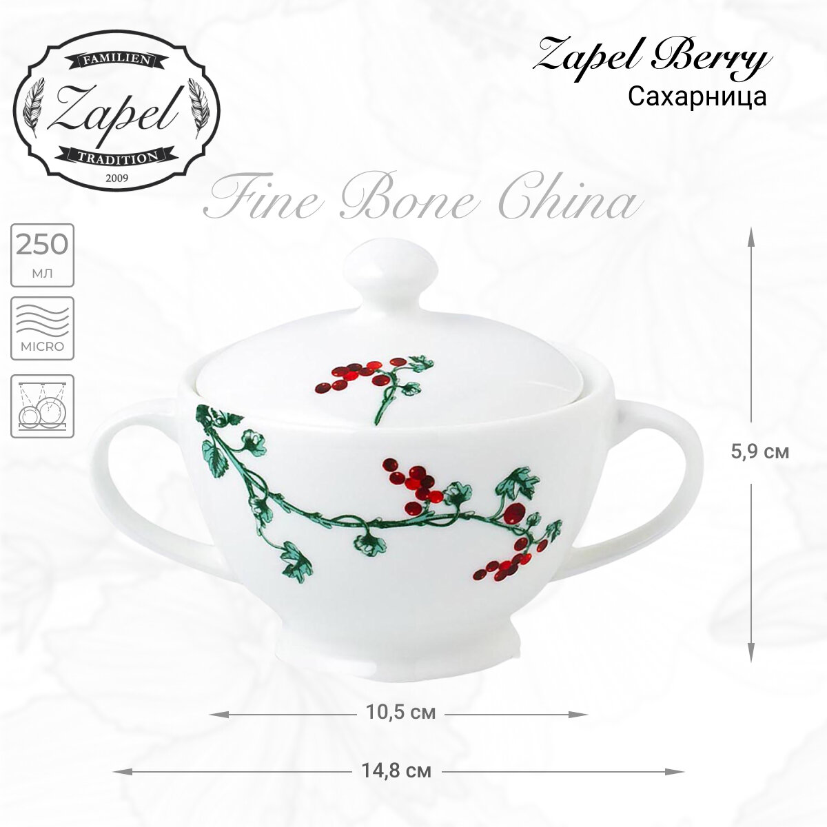 Сахарница Zapel Berry 250 мл, костяной фарфор, с рисунком, с ручками интересное:
