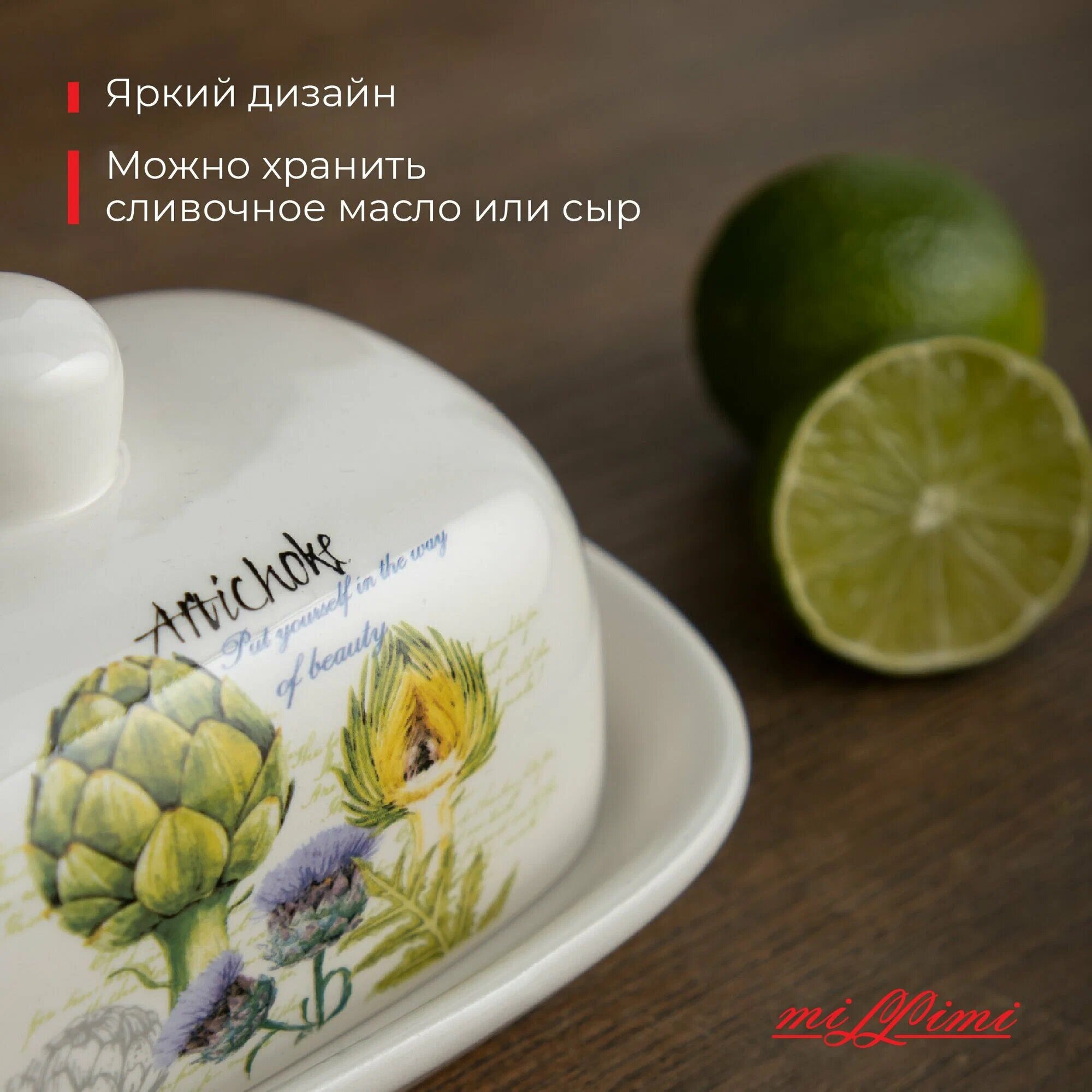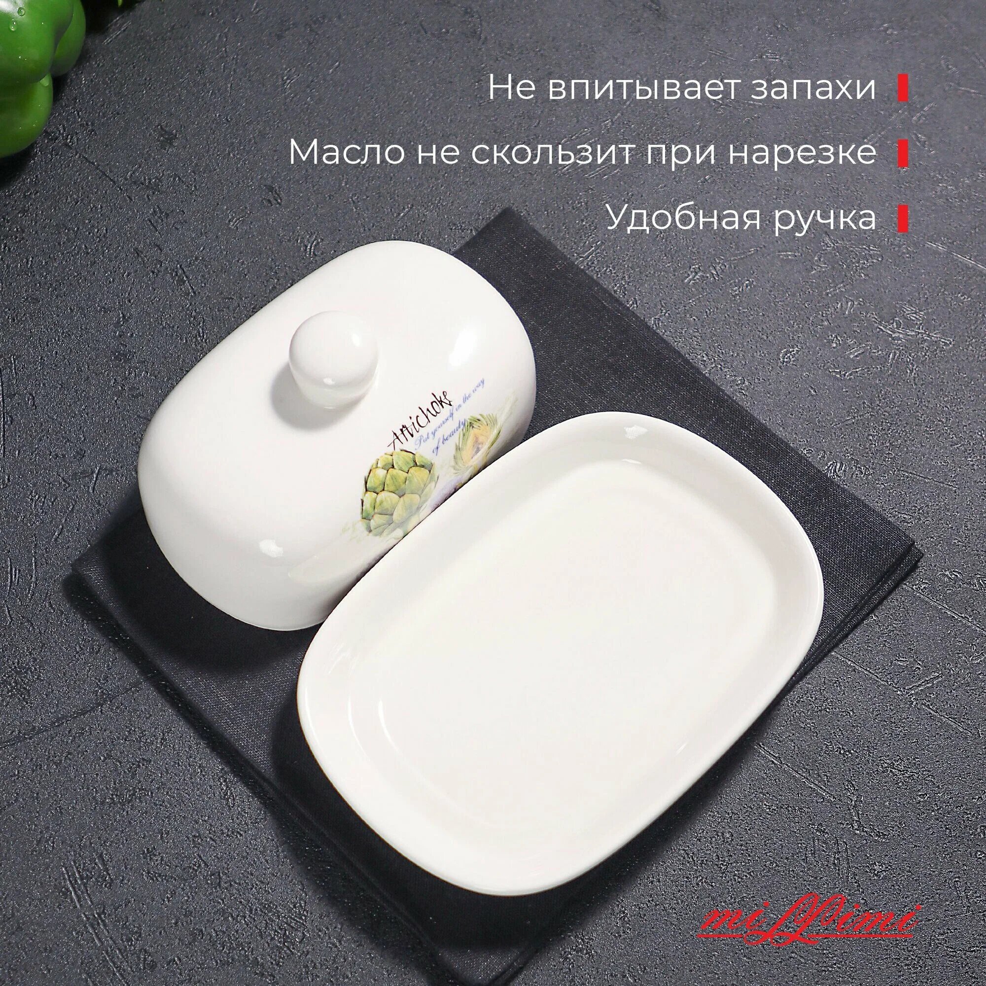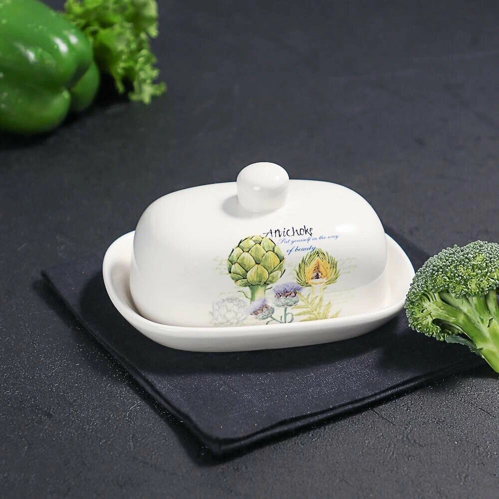 Масленка керамическая MILLIMI Артишоки,17х12x8см, белая, с крышкой интересное: