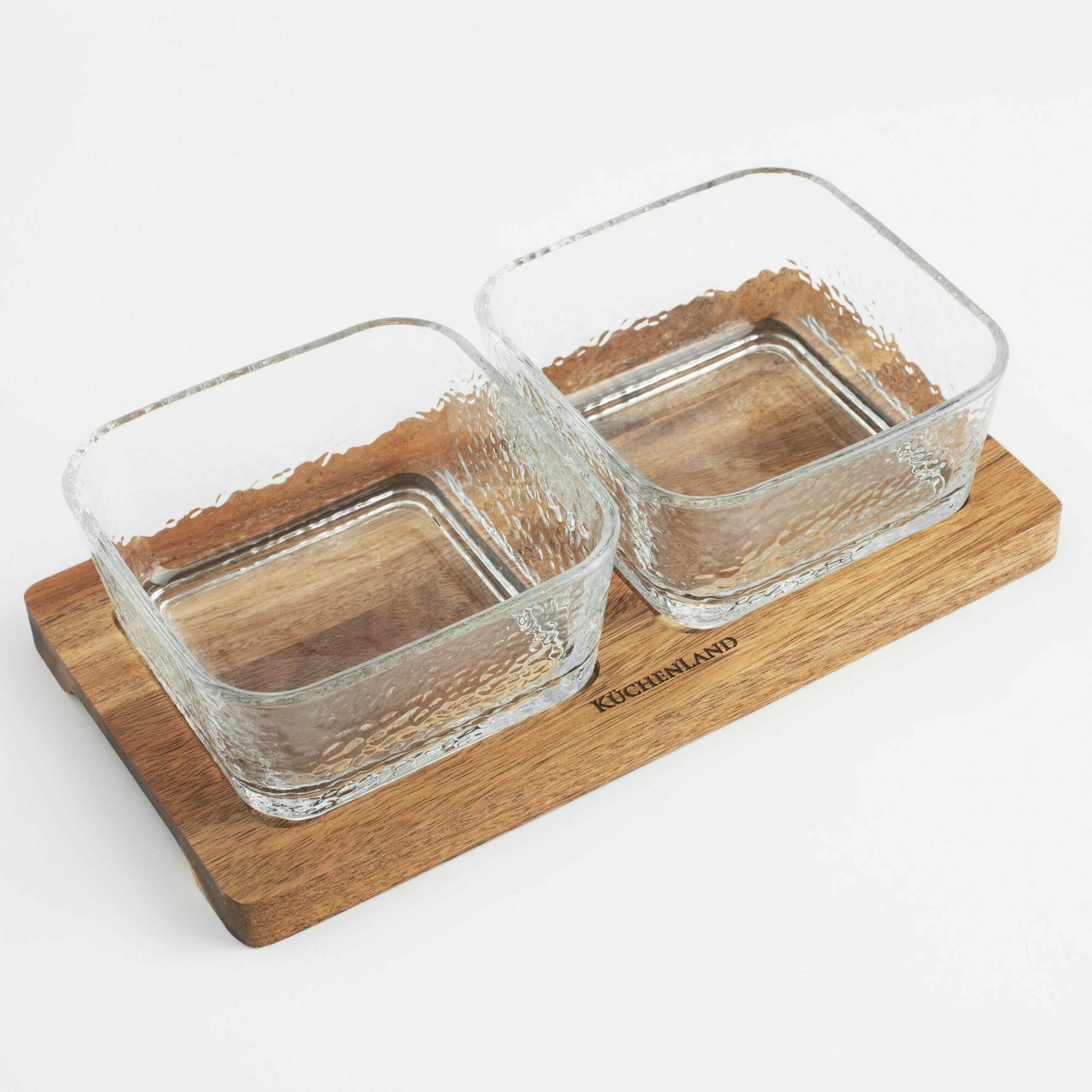 Купить Набор для закусок, 2 пр, на подставке, стекло/дерево, Квадраты, Noble tree