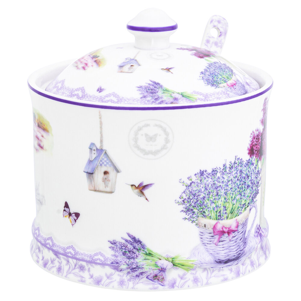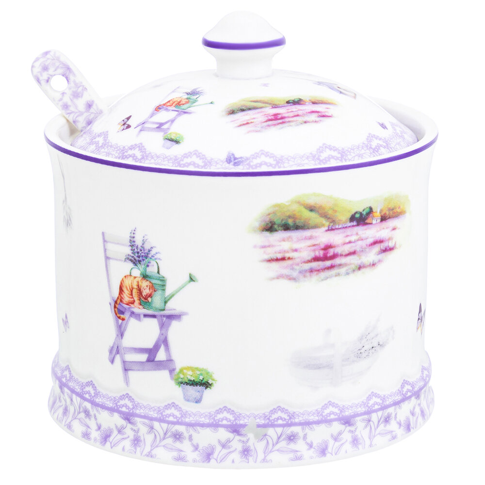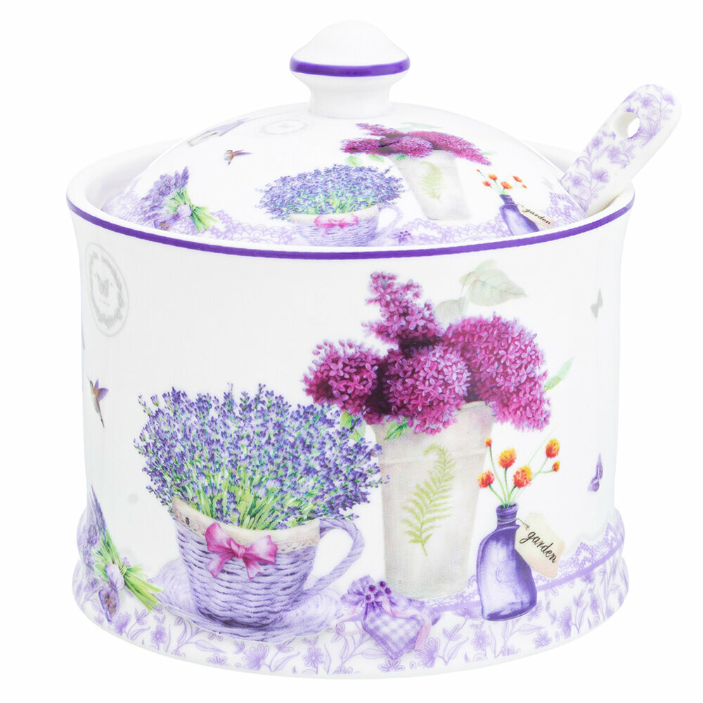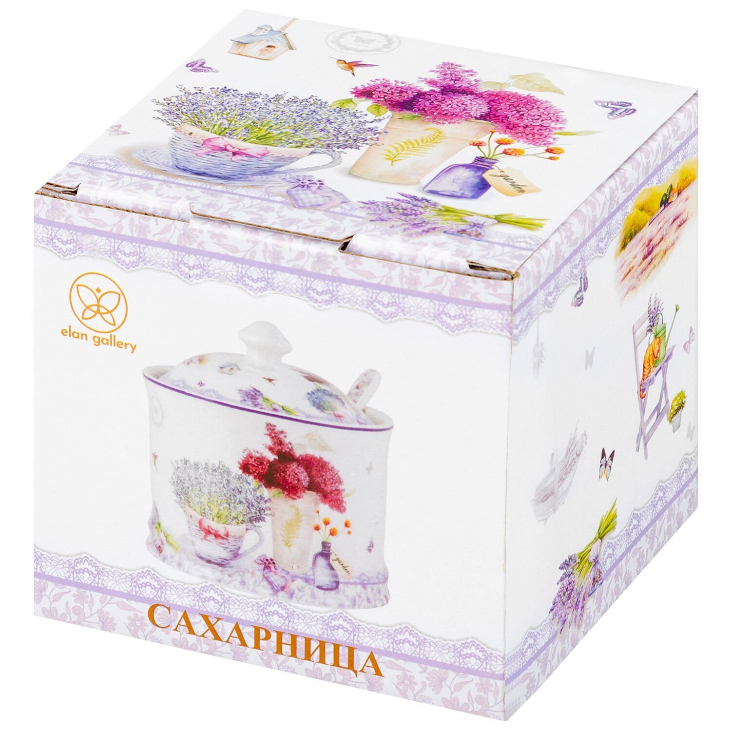 Купить Сахарница 250мл Elan Gallery Лаванда, 9х9х10 см, с ложкой, фарфор