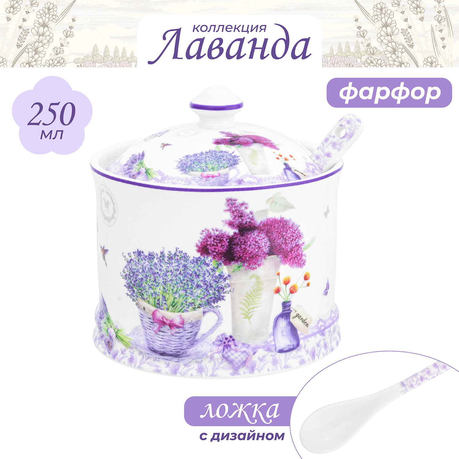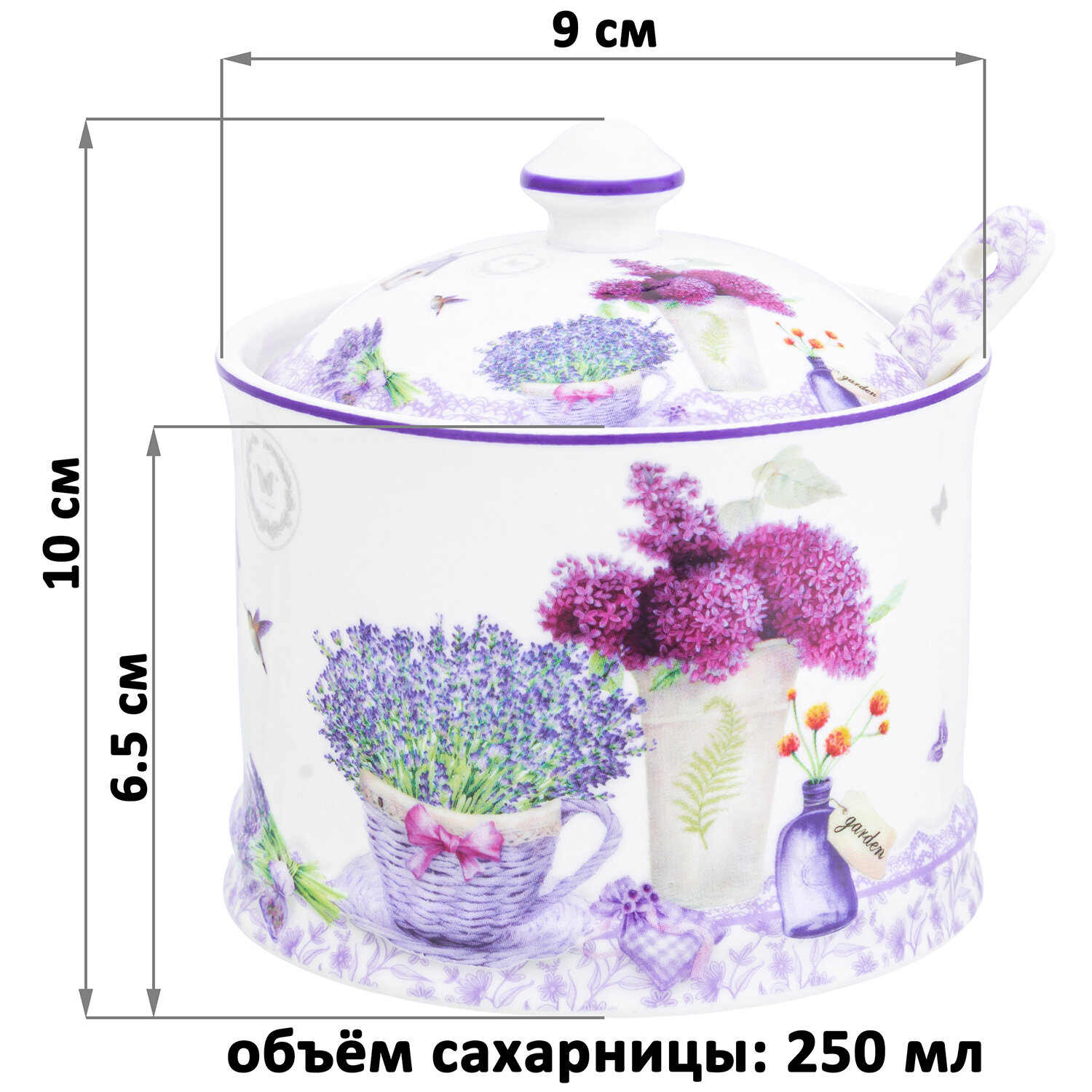 Сахарница 250мл Elan Gallery Лаванда, 9х9х10 см, с ложкой, фарфор интересное: