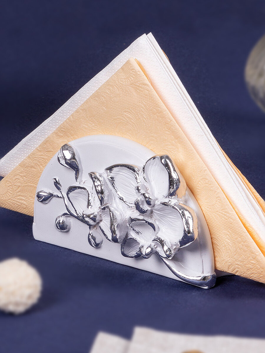 Купить Мраморная салфетница подставка Bogacho Орхидея с красивым декором для бумажных салфеток на кухню и в столовую