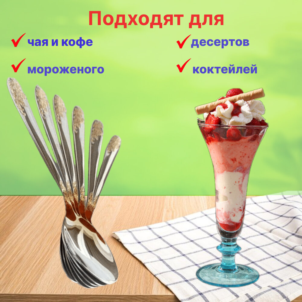 Ложки чайные с длинной ручкой , кофейная , десертная , коктейльная , 6 шт , с узором, 19,5 мм интересное: