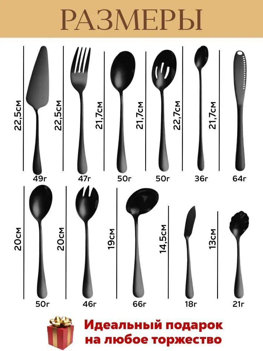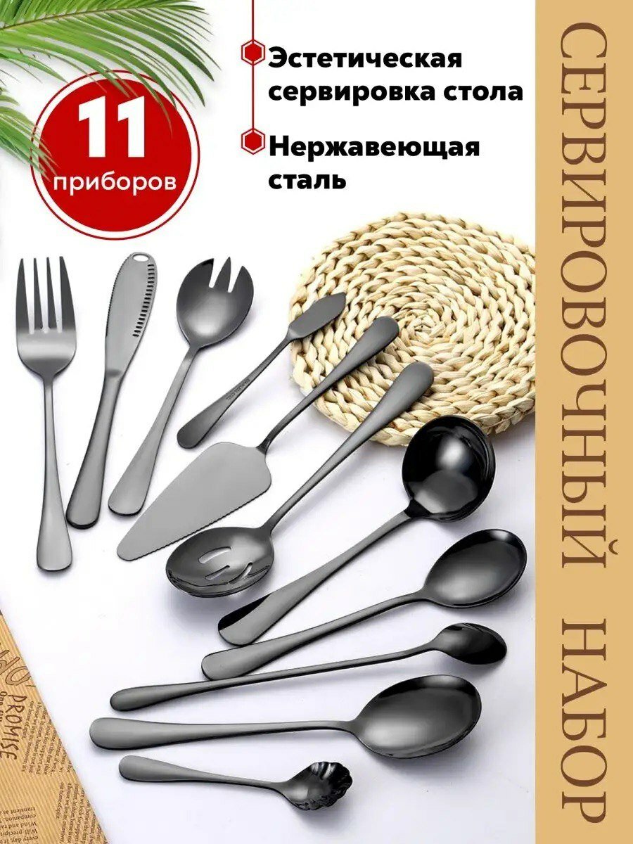Подарочный набор столовых приборов из нержавеющей стали для сервировки стола, для фуршета, банкета, 11 предметов, черные интересное: