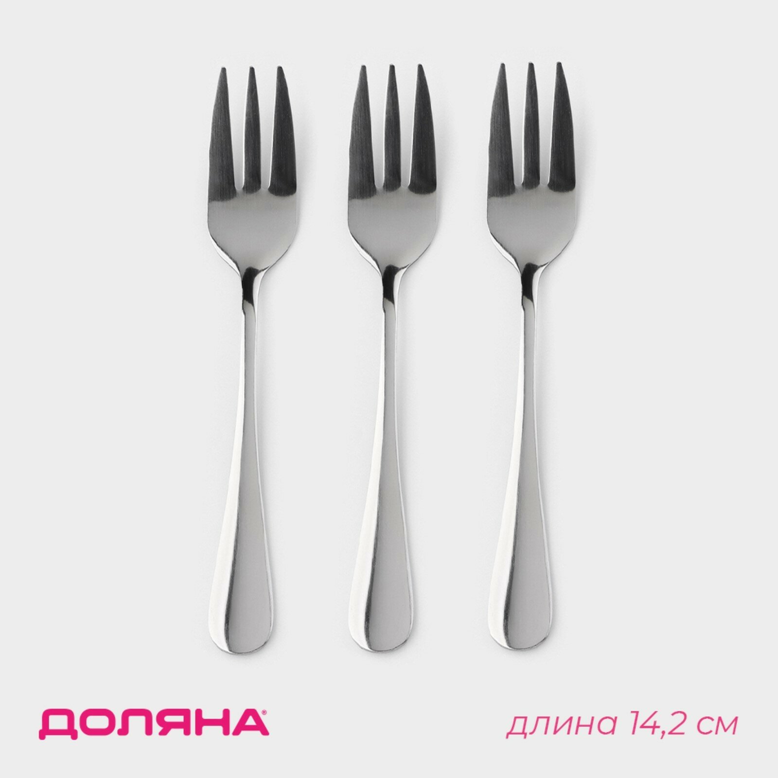 Купить Набор вилок десертных из нержавеющей стали Доляна, длина 14,2 см, толщина 2,2 мм, 410 сталь, 3 шт