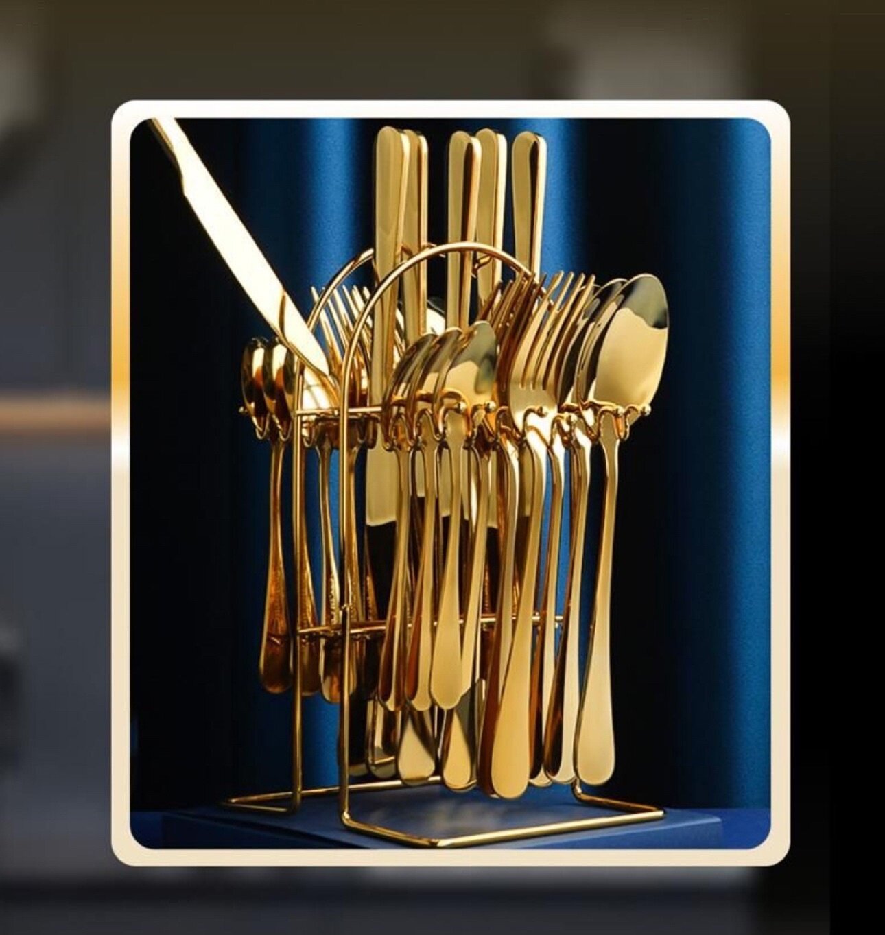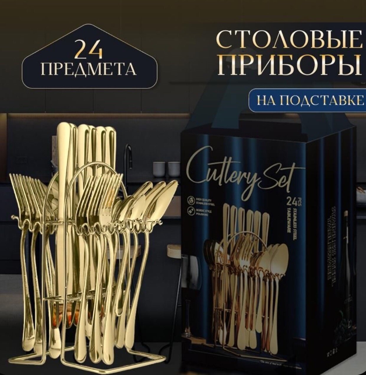 Набор столовых приборов на подставке от kosmo.store, золотистые, 24 предмета интересное: