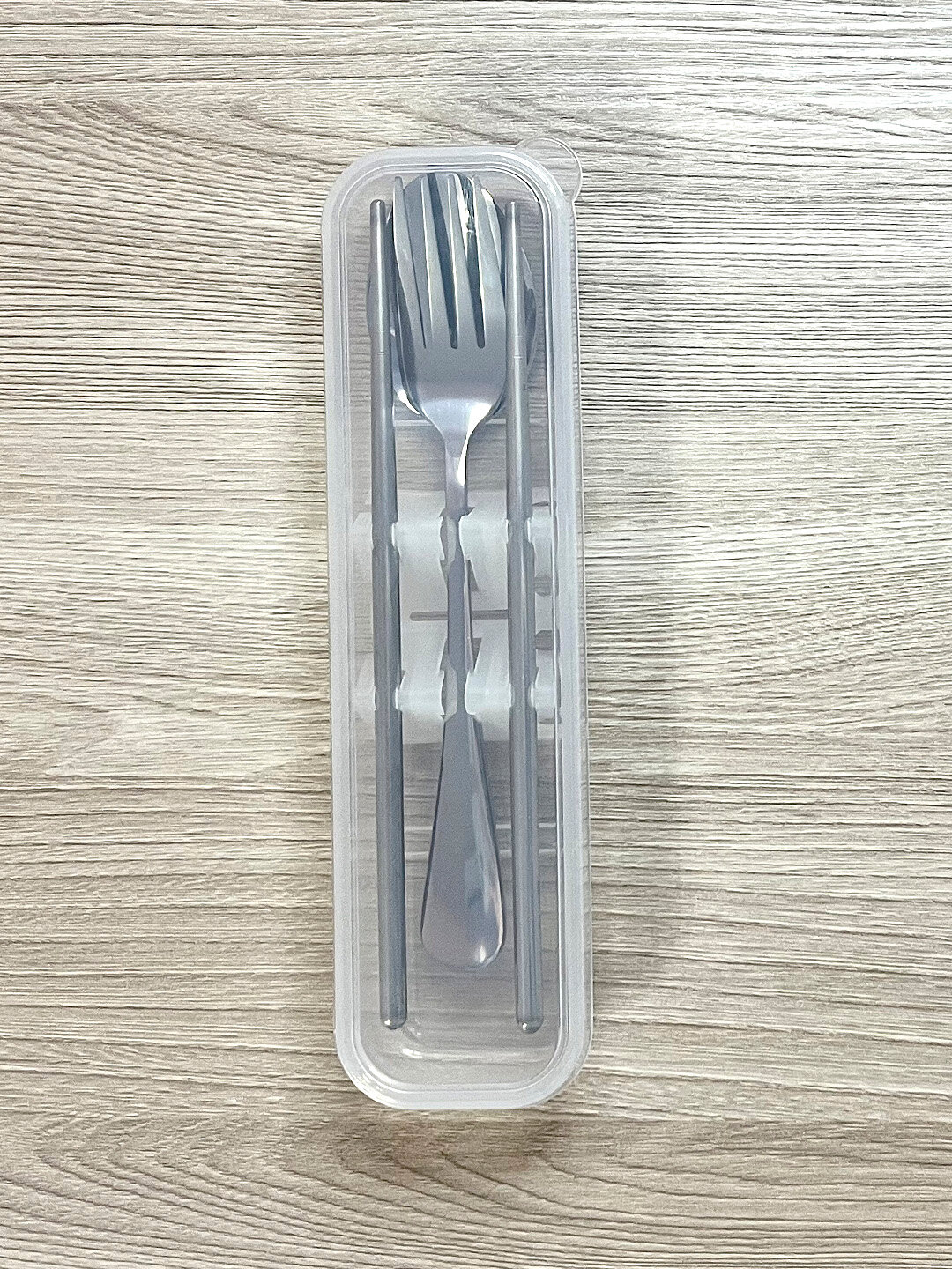 Купить Дорожный набор столовых приборов в футляре - 3 предмета, качественный (ложка, вилка, китайские палочки), прозрачный