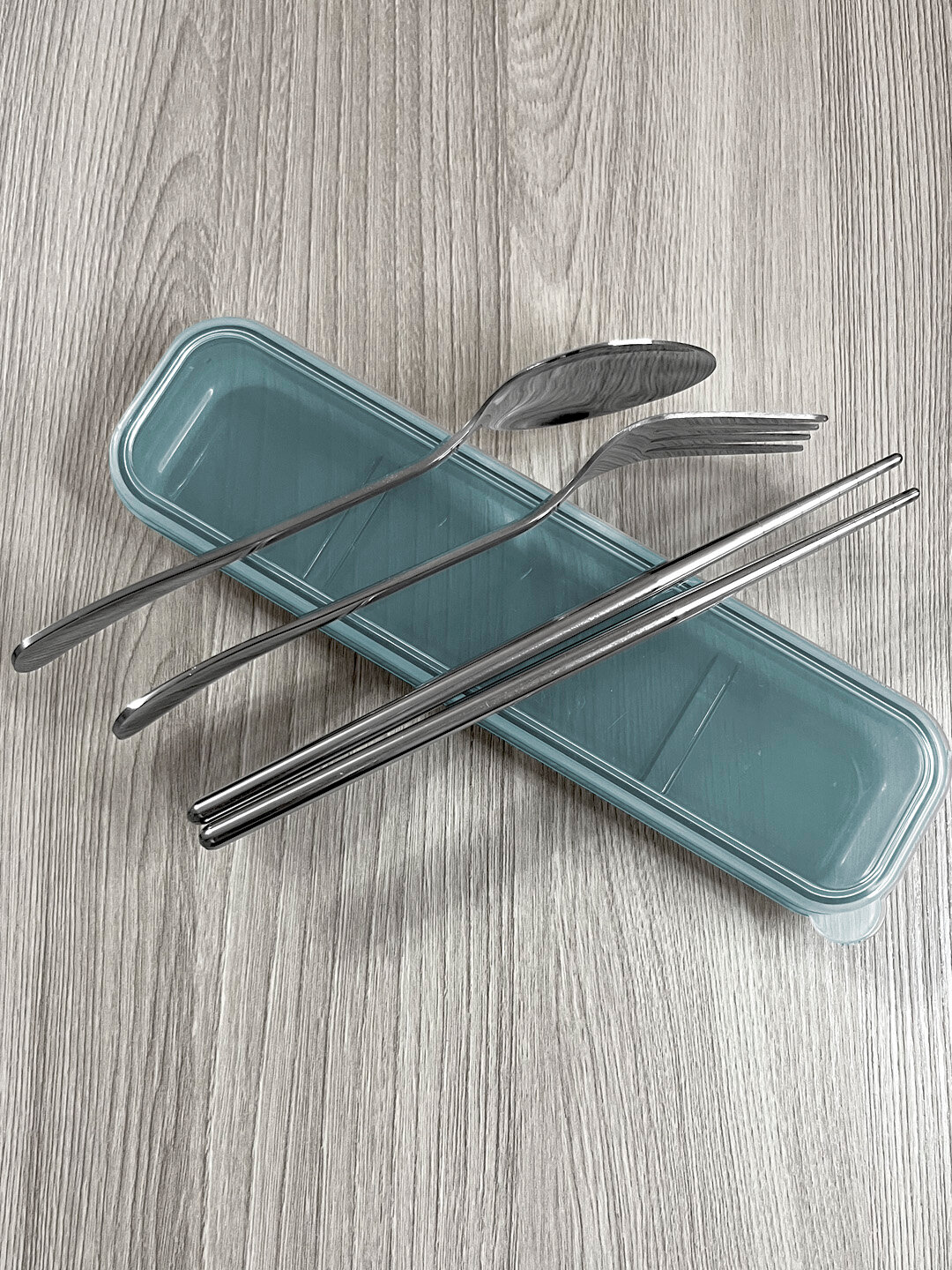 Дорожный набор столовых приборов из 3 предметов (вилка, ложка , китайские палочки), увеличена толщина металла, голубой