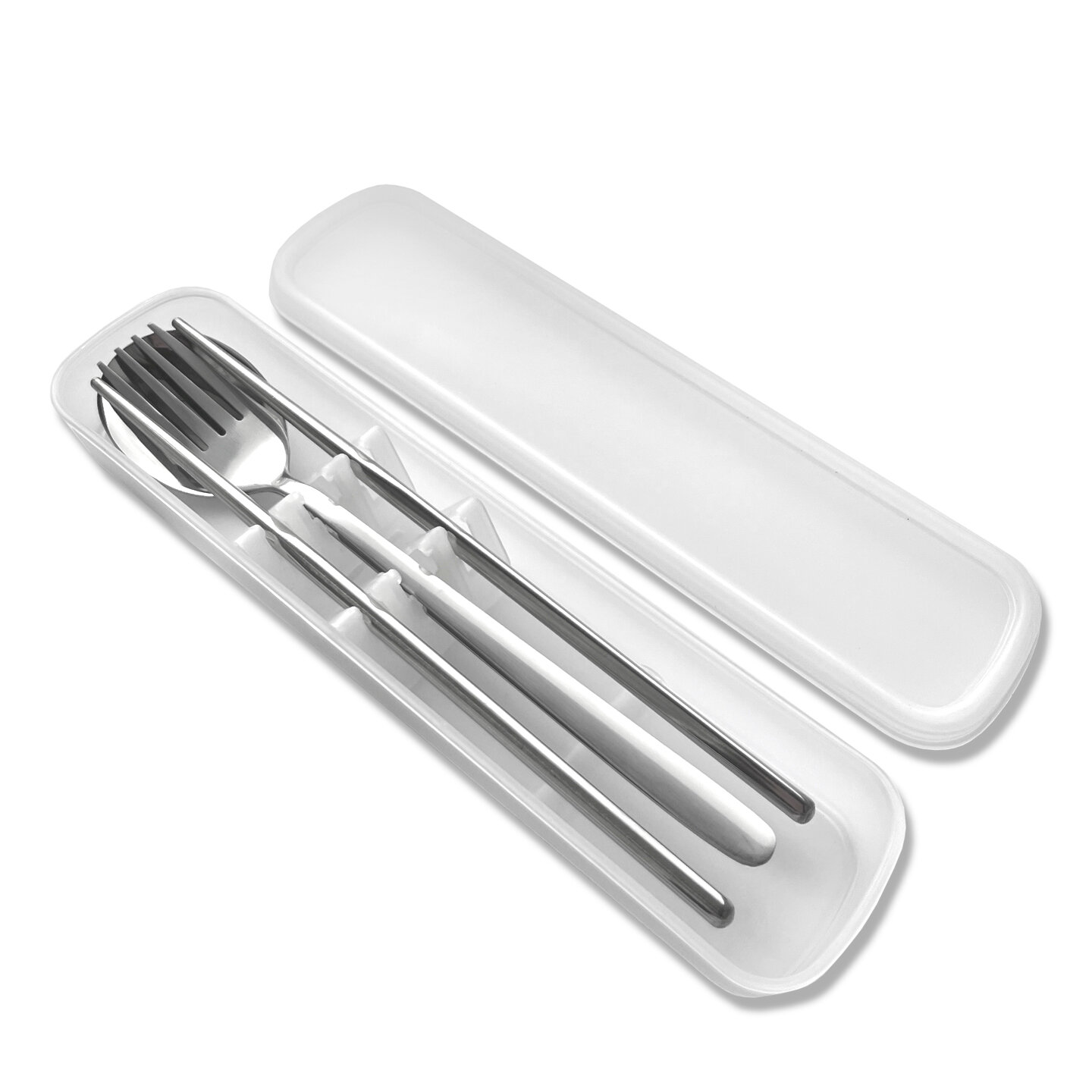 Купить Дорожный набор полноразмерных столовых приборов из 3 предметов (вилка, овальная ложка , китайские палочки), качественный походный набор в футляре, белый матовый