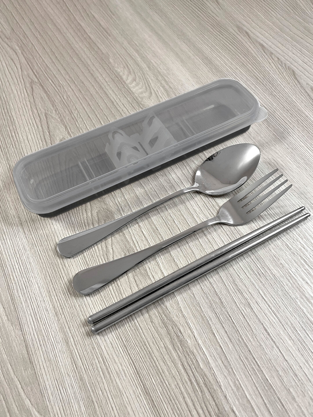 Дорожный набор столовых приборов в футляре - 3 предмета, качественный (ложка, вилка, китайские палочки), прозрачный
