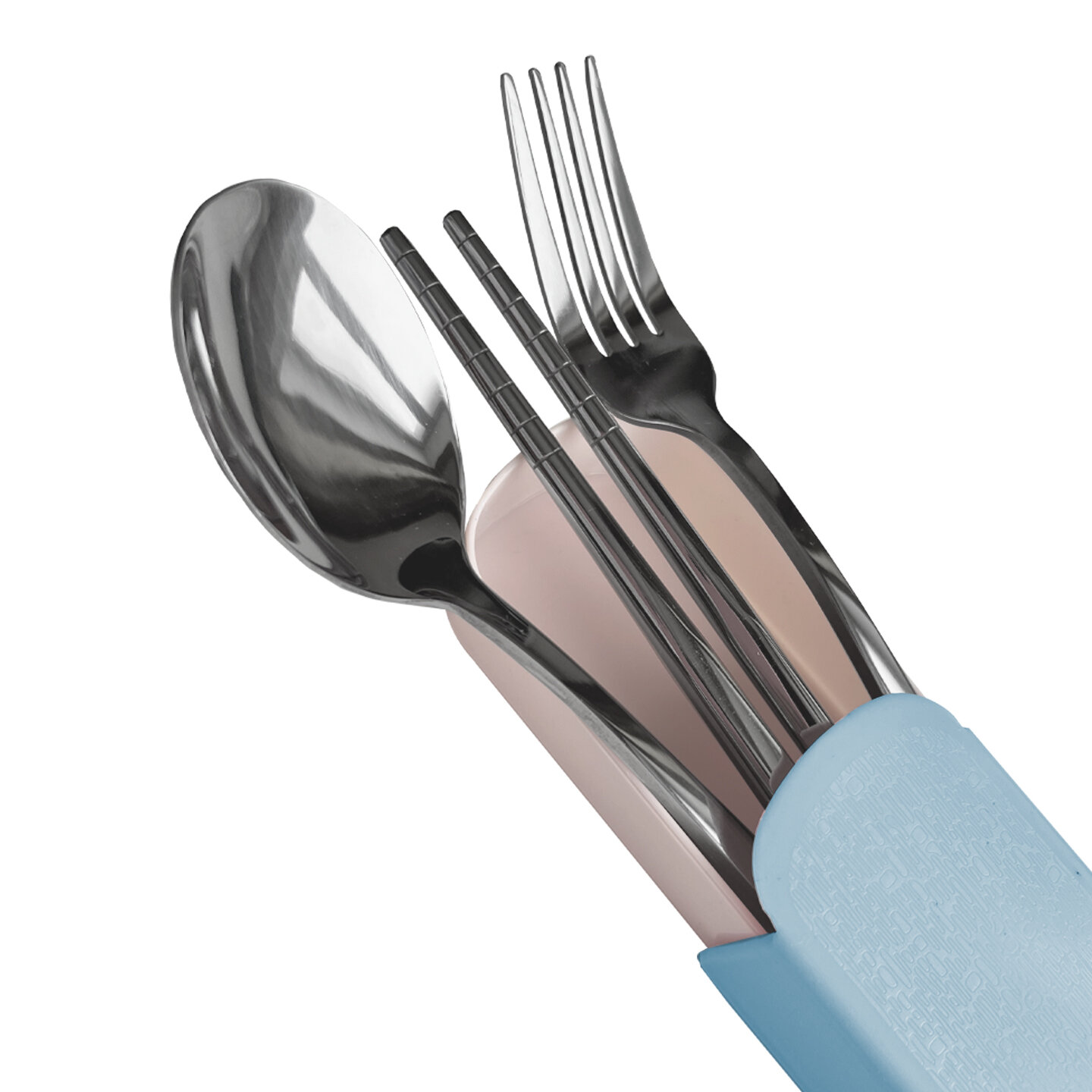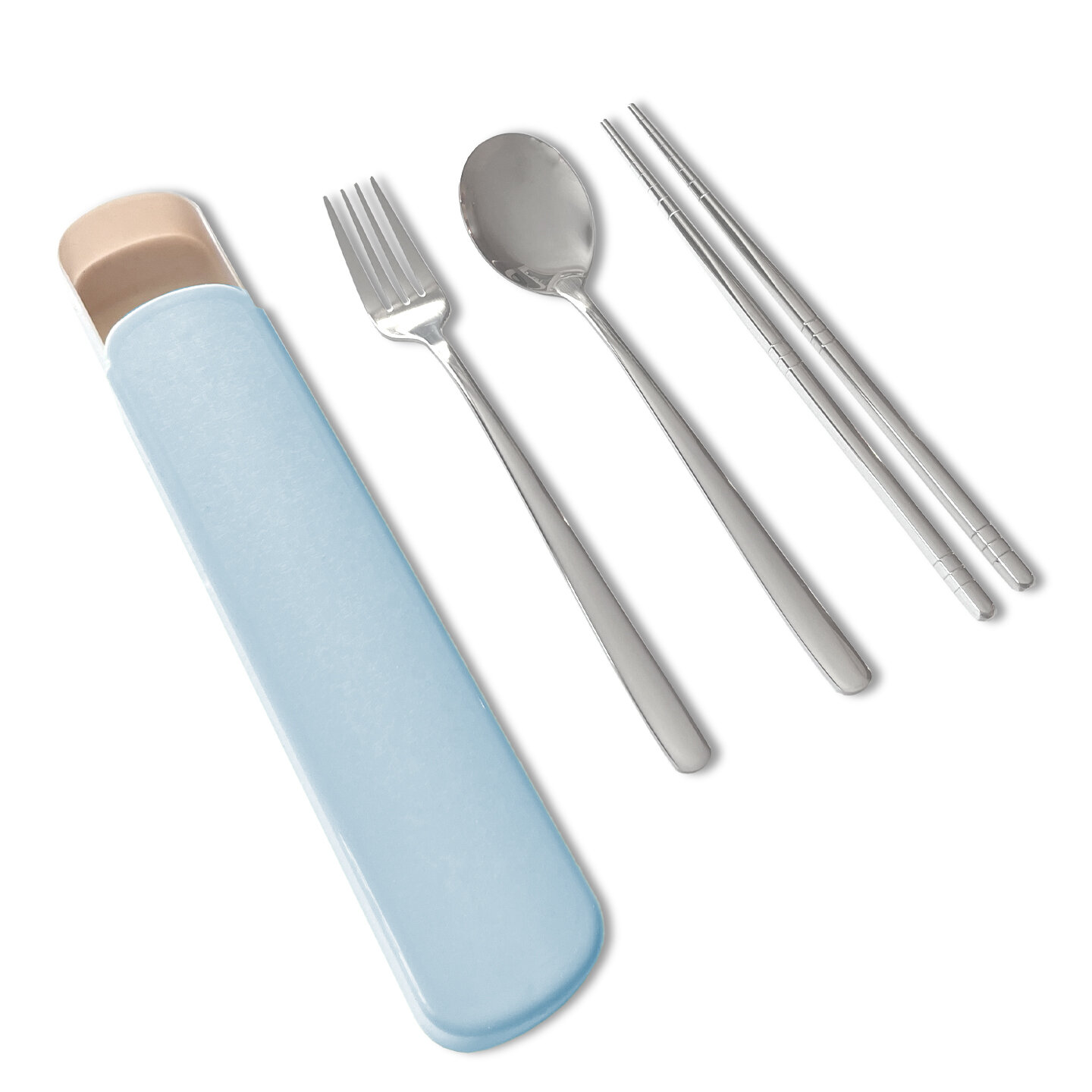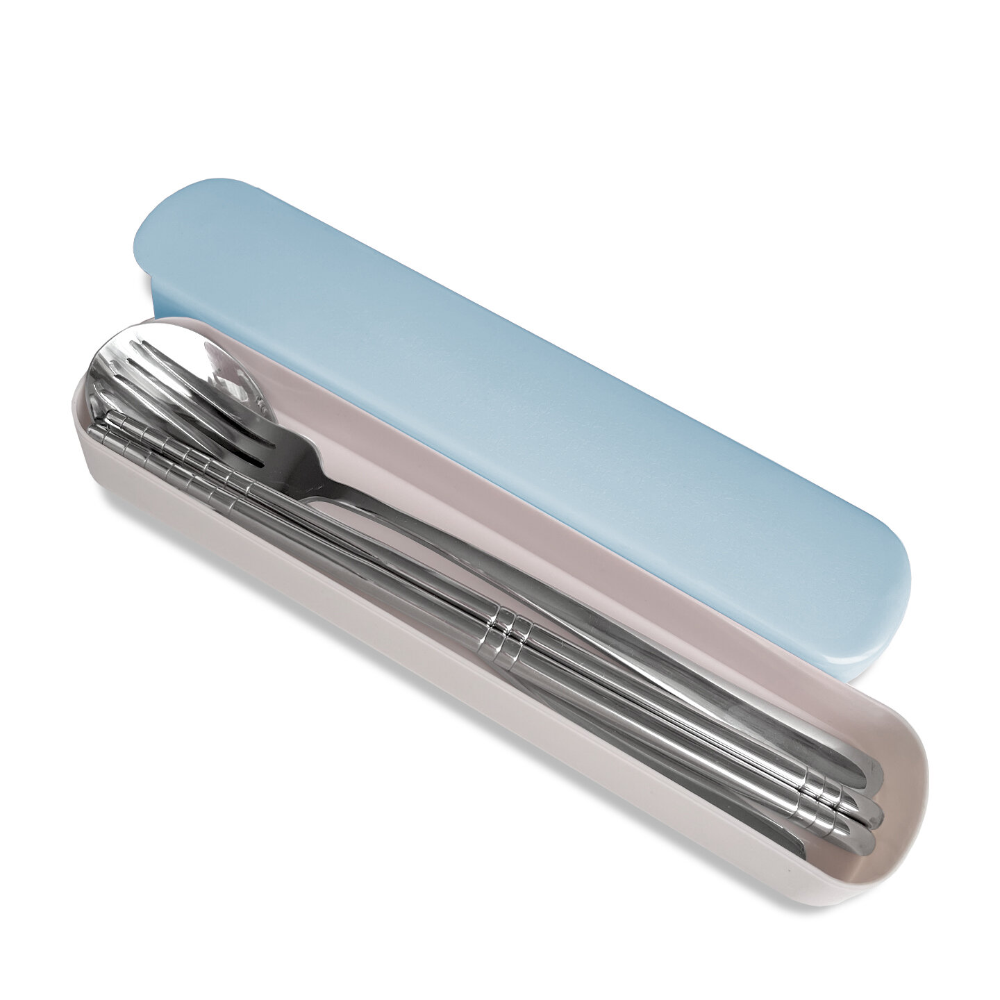 Купить Набор качественных столовых приборов, дорожный - 3 предмета в футляре (вилка, ложка , китайские палочки из нержавеющей стали), синий