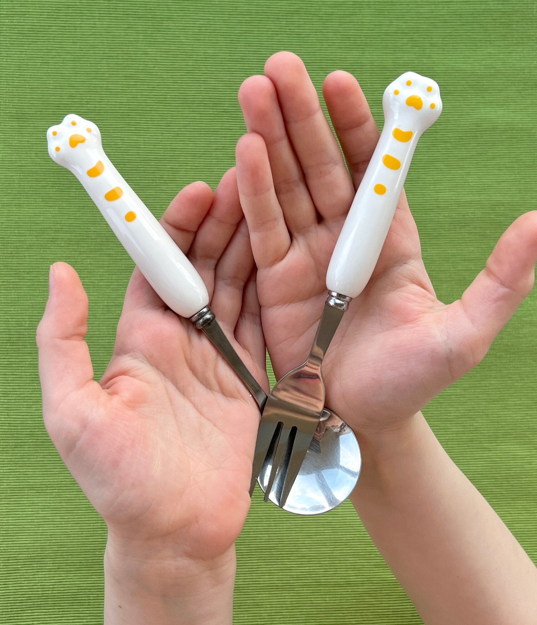 Купить Ложка и вилка Белая лапка Тигра, 2 предмета, с футляром, керамика, нержавеющая сталь