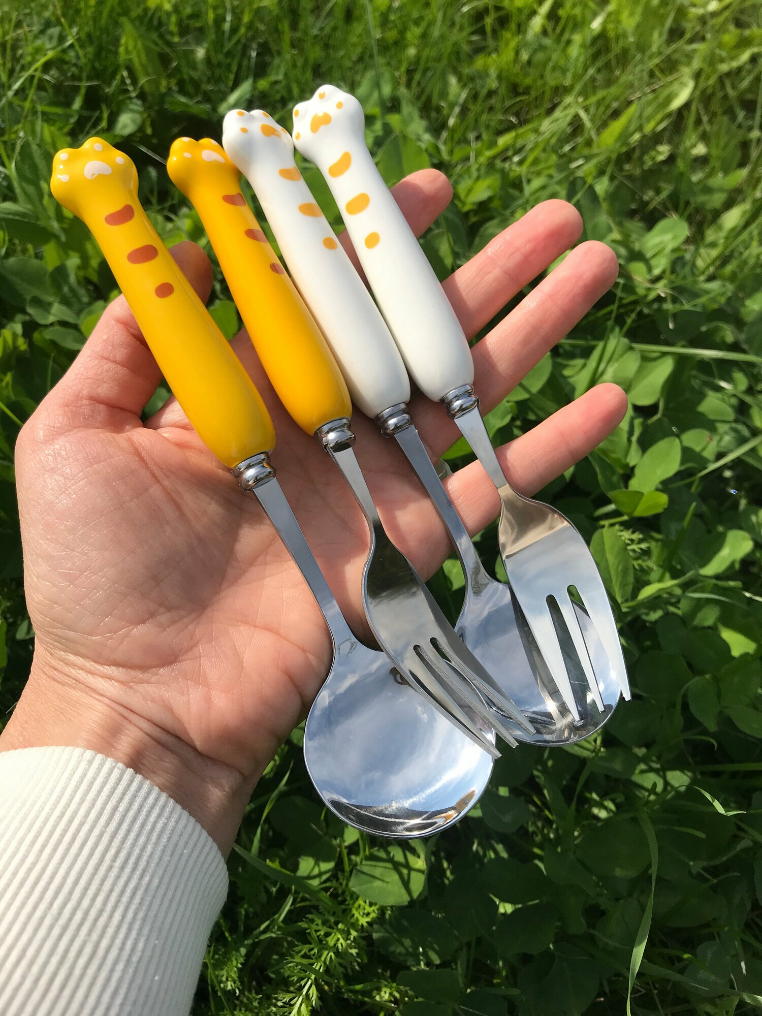 Ложка и вилка Белая лапка Тигра, 2 предмета, с футляром, керамика, нержавеющая сталь интересное:
