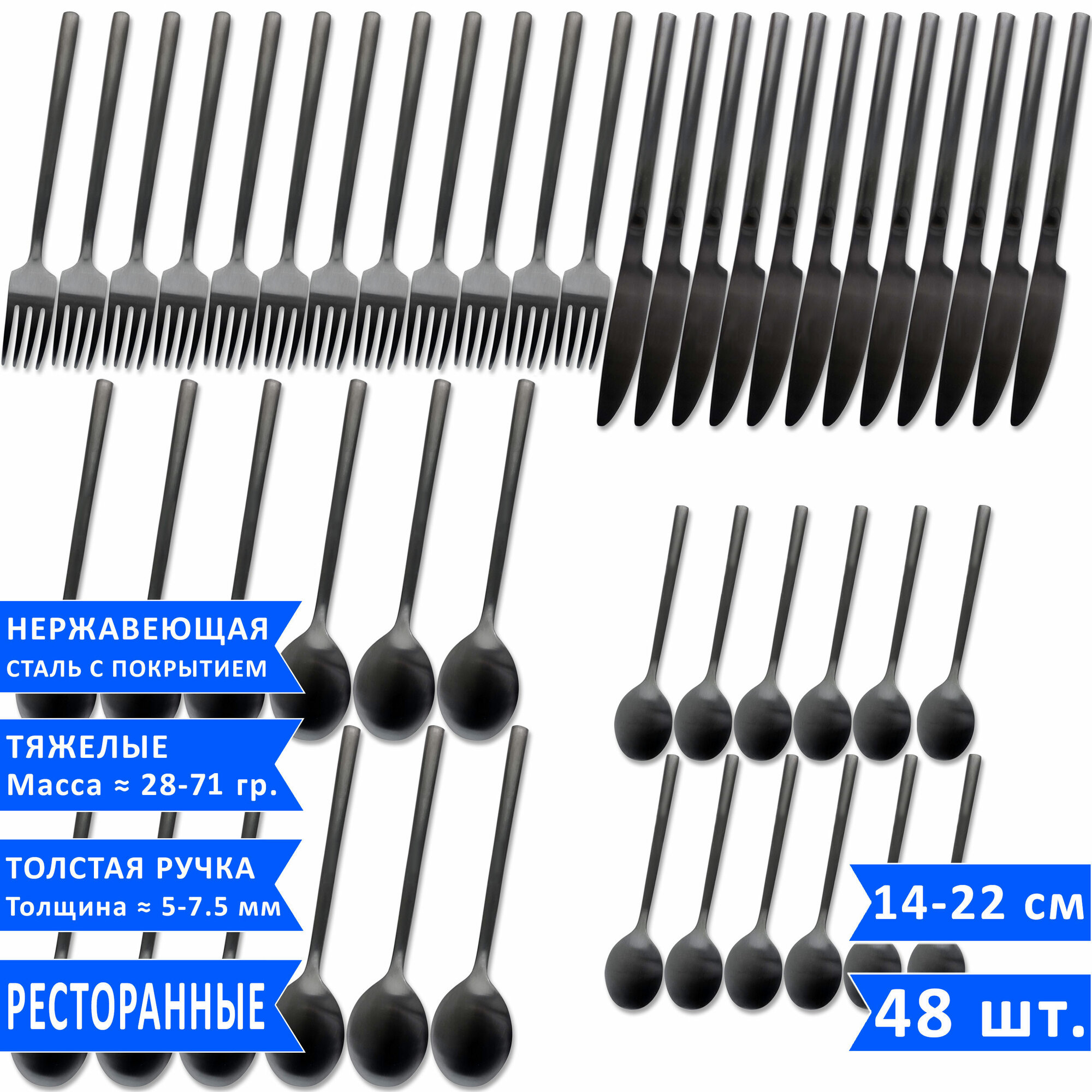 Купить Набор столовых приборов VELERCART Sapporo Black (12 столовых ложек, 12 вилок, 12 ножей и 12 чайных ложек), нержавеющая сталь, 48 предметов