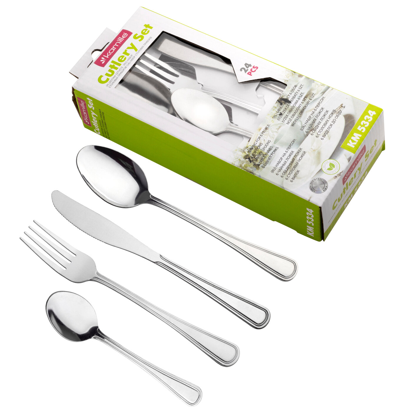 Купить Набор столовых приборов 24 предмета Kamille KM 5334 из нержавеющей стали (серебристый)
