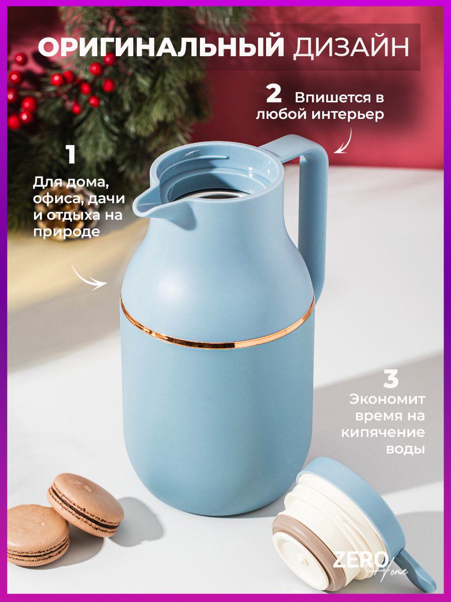 Термос для чая и кофе 1л 600 мл Zero Home с кнопкой и стальным корпусом интересное: