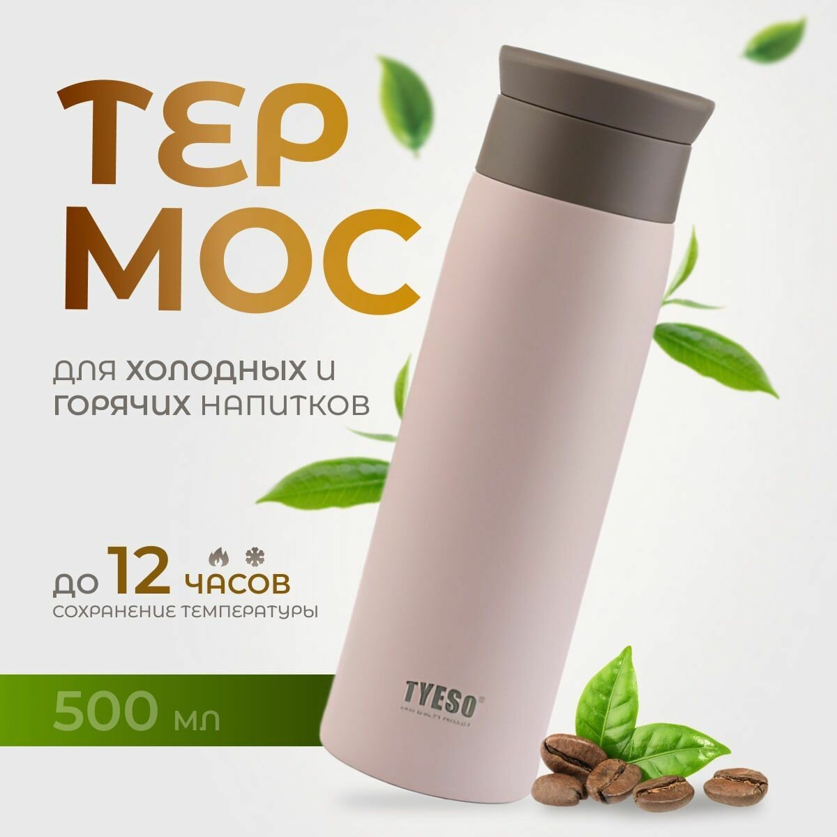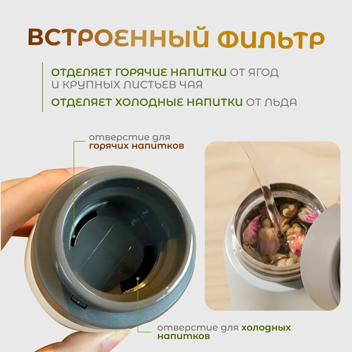 Купить Термос для кофе и чая. компактный 500 мл. Термокружка с фильтром, бежевый.