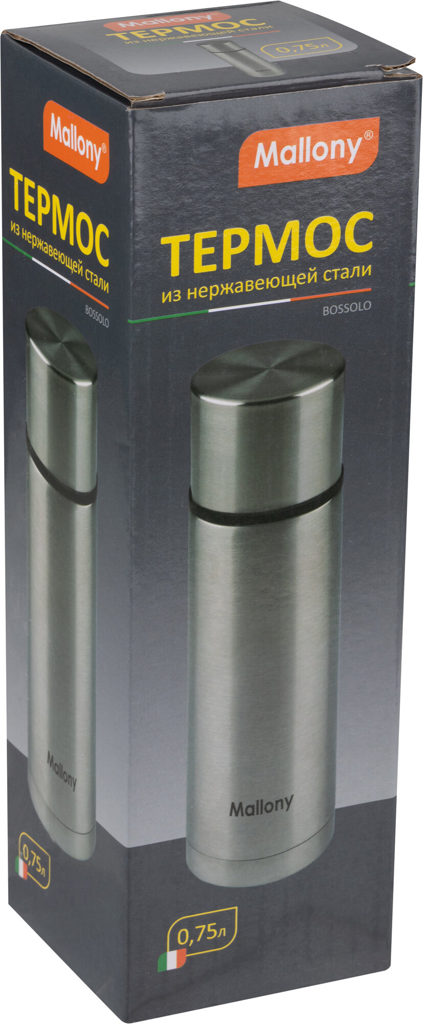 Купить Термос из нержавеющей стали с клапаном-кнопкой Mallony Bossolo, 0.75 литра, серебристый