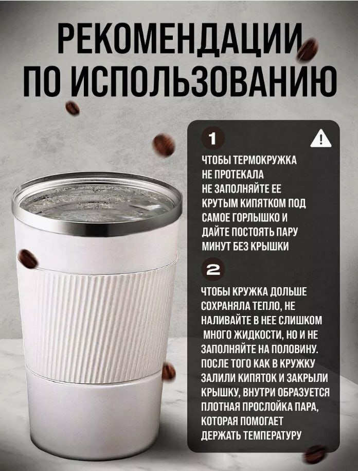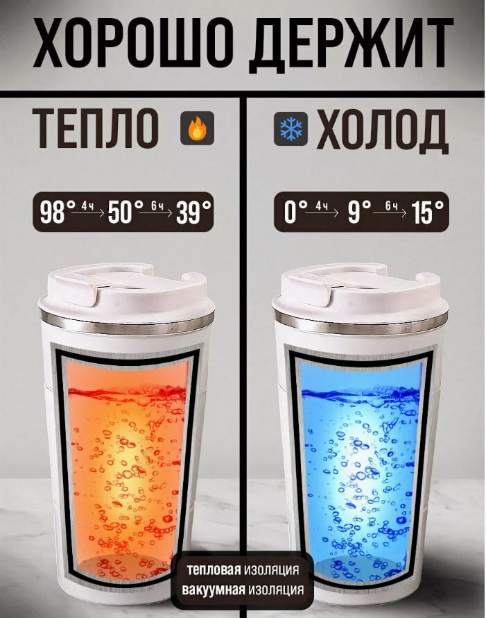 Термокружка с датчиком температуры для природы и пикника, белый цвет 380 мл интересное: