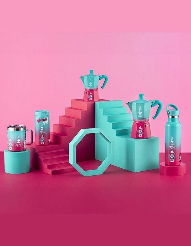 Купить Термокружка "Игра в кальмара" Bialetti, розово-голубого цвета, сталь, 360мл