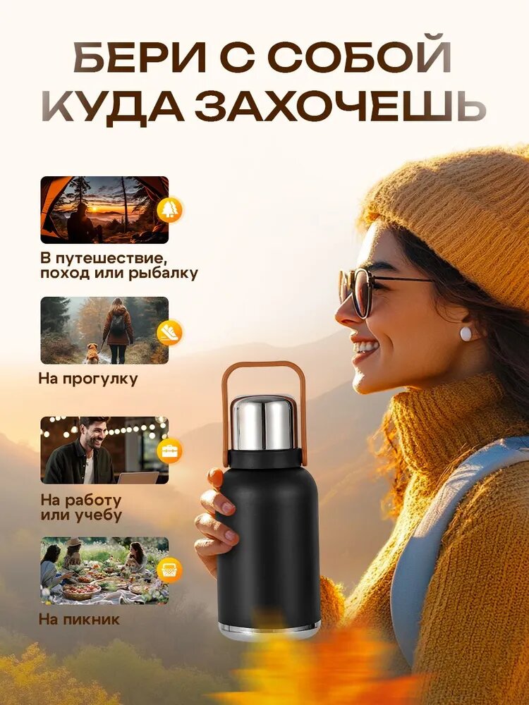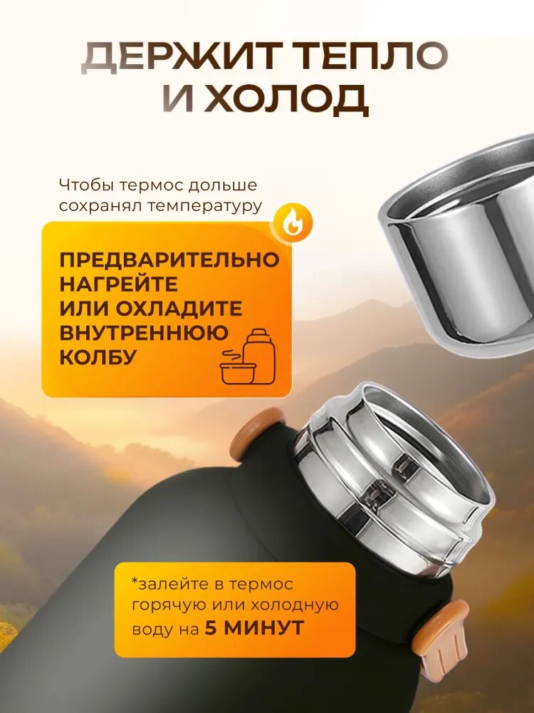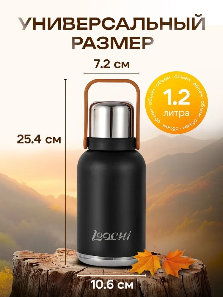 Термос, нержавеющая сталь, с ситечком, для чая/кофе, черный, 1,2 л интересное: