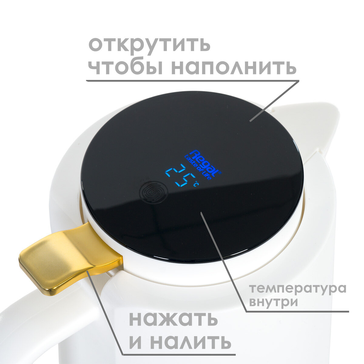Кувшин-термос Regal c вакуумной стеклянной колбой и датчиком температуры RGP33P-15, 035