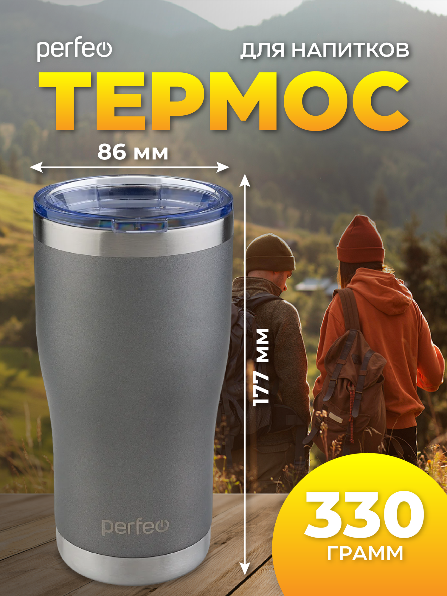 Купить Термокружка PERFEO для напитков с прозрачной крышкой, объем 0,6 л, серый (PF_C3725)
