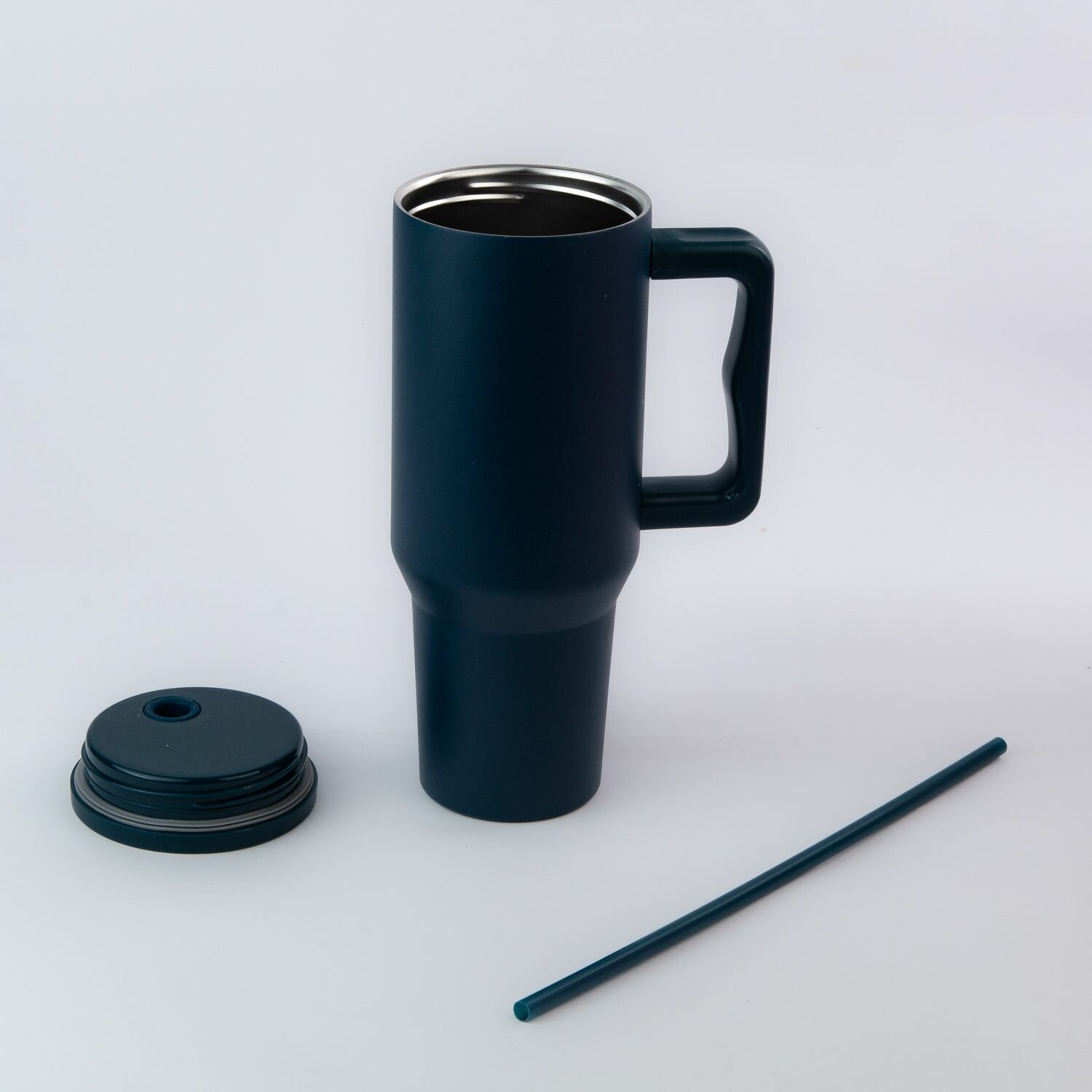 Купить Термокружка MiKSiK, с ручкой и трубочкой, нержавеющая сталь, 1л, синяя
