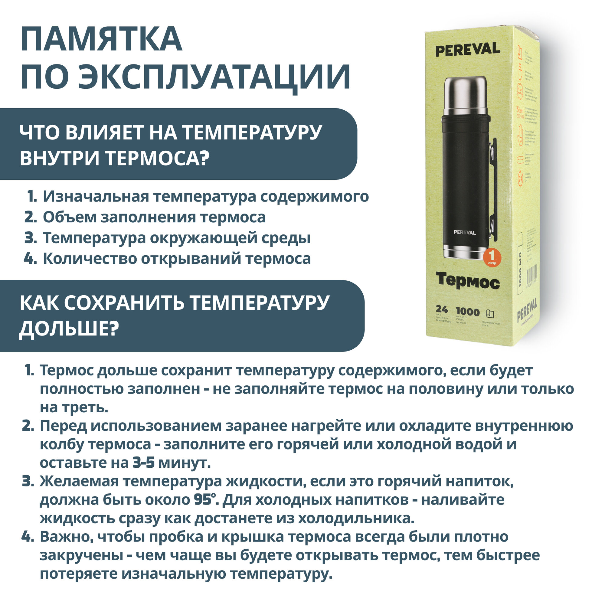 Термос Pereval HY-1000-16 1000мл black интересное: