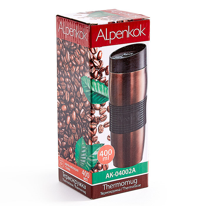 Купить Термокружка 400 мл вакуумная Alpenkok AK-04002A непроливайка, коричневая